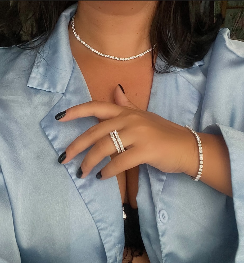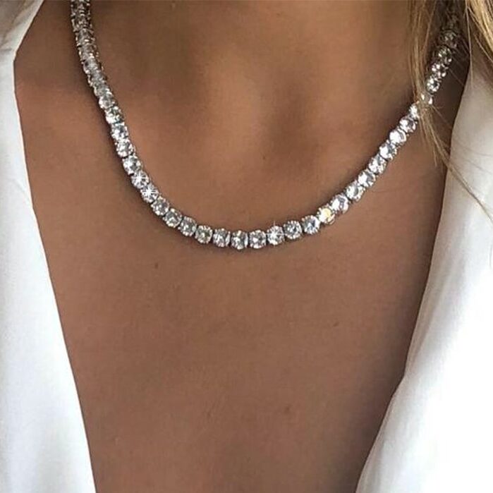 שרשרת טניס יוקרתית משובצת זירקונים עגולים
