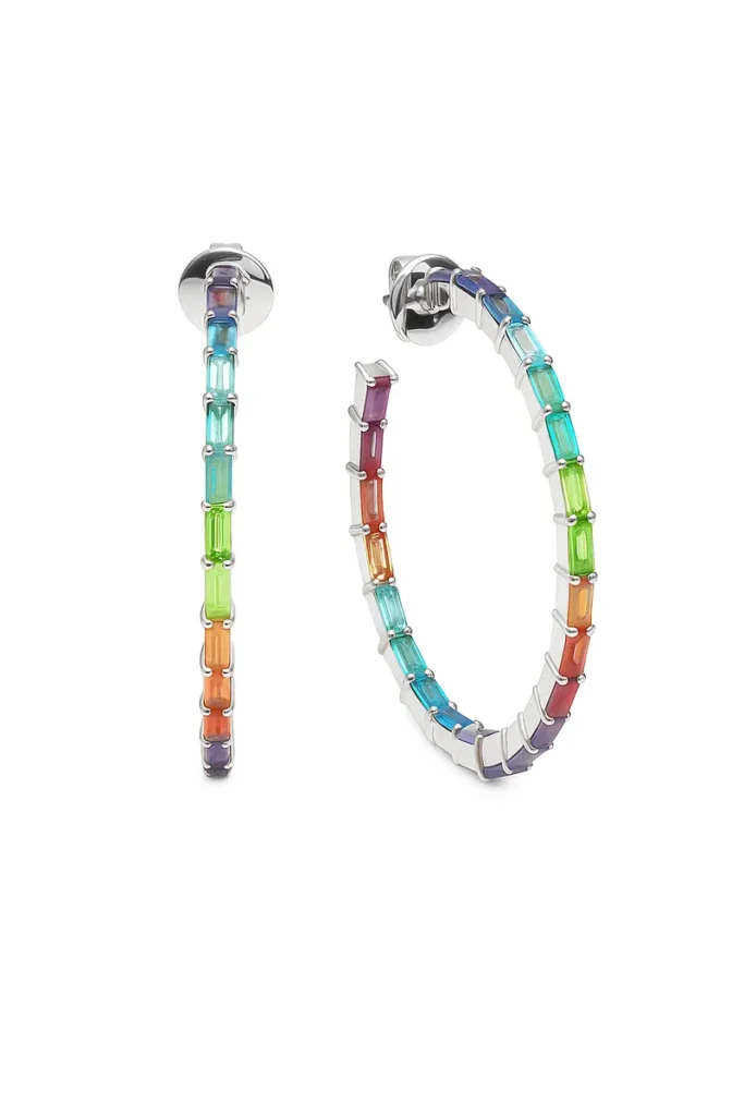 עגילי חישוק דקים משובצים בבגטים צבעוניים