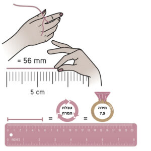- השתמשו בתרשים שלמטה על מנת לקבוע את גודל הטבעת שמתאימה לכם.