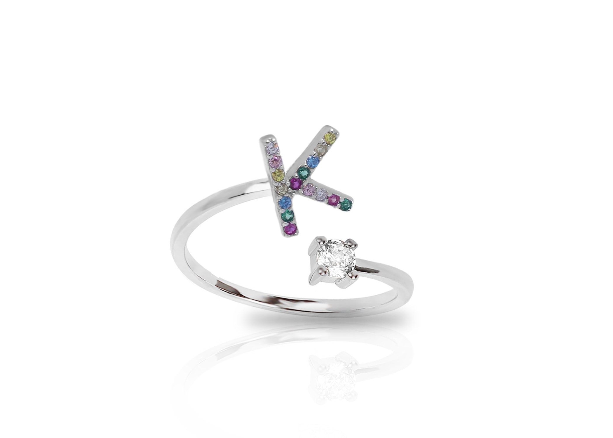 טבעת אות K משובצת זירקונים צבעוניים מכסף 925 טהור לאישה. הטבעת משובצת בזירקוני AAAA בחיתוך יהלום. הטבעת ניתנת להקטנה והגדלה לפי מידת האצבע. מצופה ברודיום להגנה מפני התחמצנות ושריטות. המוצר מגיע באריזת מתנה מהודרת וממותגת! חצי שנה אחריות.