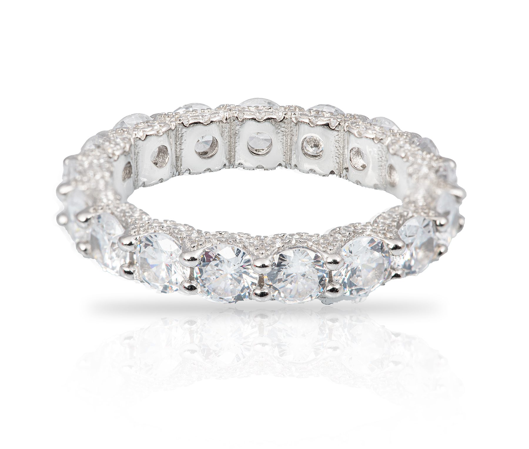 טבעת איטרניטי משובצת זירקונים מכסף 925 טהור לאישה. הטבעת משובצת בזירקוני AAAA בחיתוך יהלום. מצופה ברודיום להגנה מפני התחמצנות ושריטות. המוצר מגיע באריזת מתנה מהודרת וממותגת! חצי שנה אחריות.
