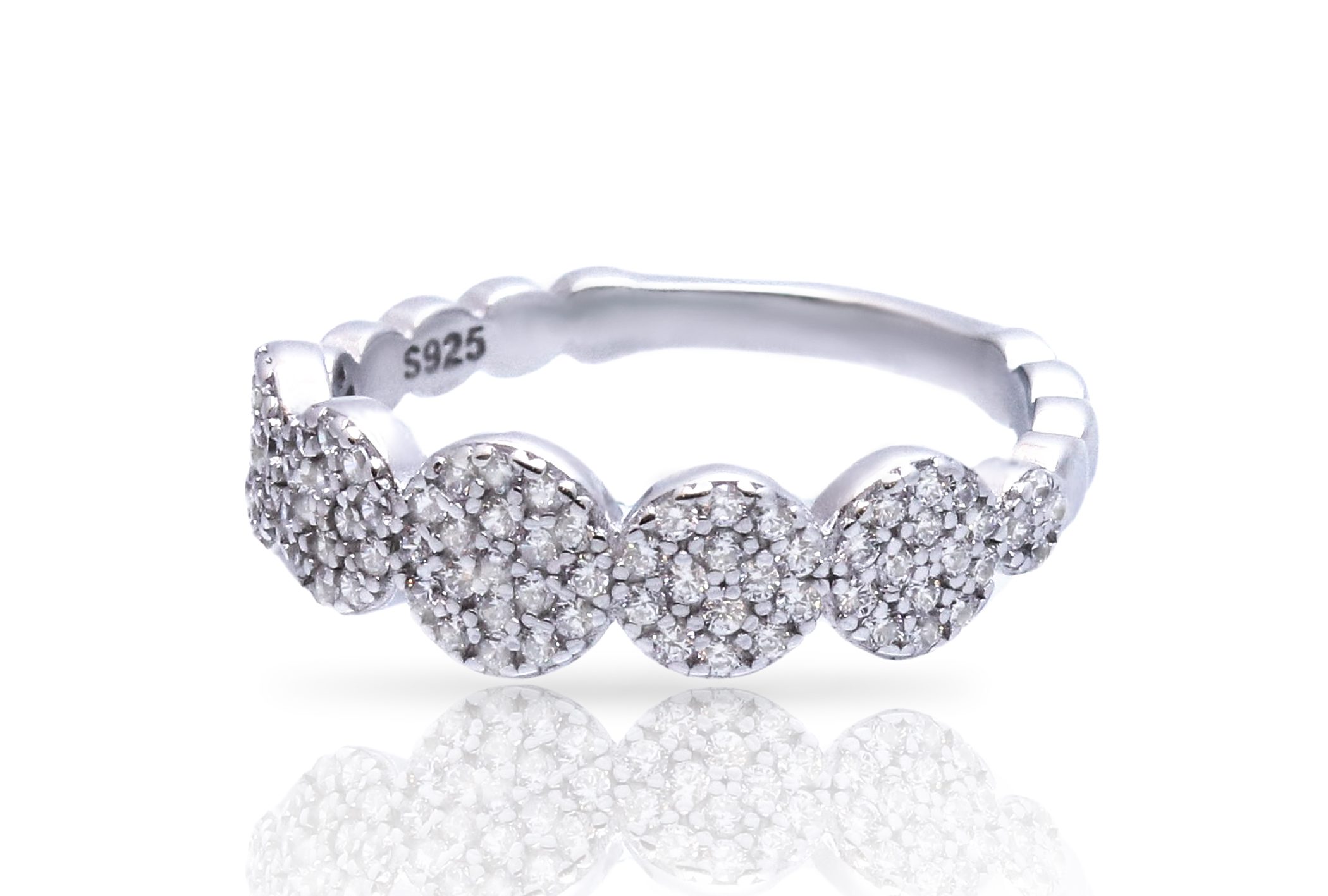 טבעת אלמנטים עגולים משובצים זירקונים מכסף 925 טהור לאישה. הטבעת משובצת בזירקוני AAAA בחיתוך יהלום. מצופה ברודיום להגנה מפני התחמצנות ושריטות. המוצר מגיע באריזת מתנה מהודרת וממותגת! חצי שנה אחריות.
