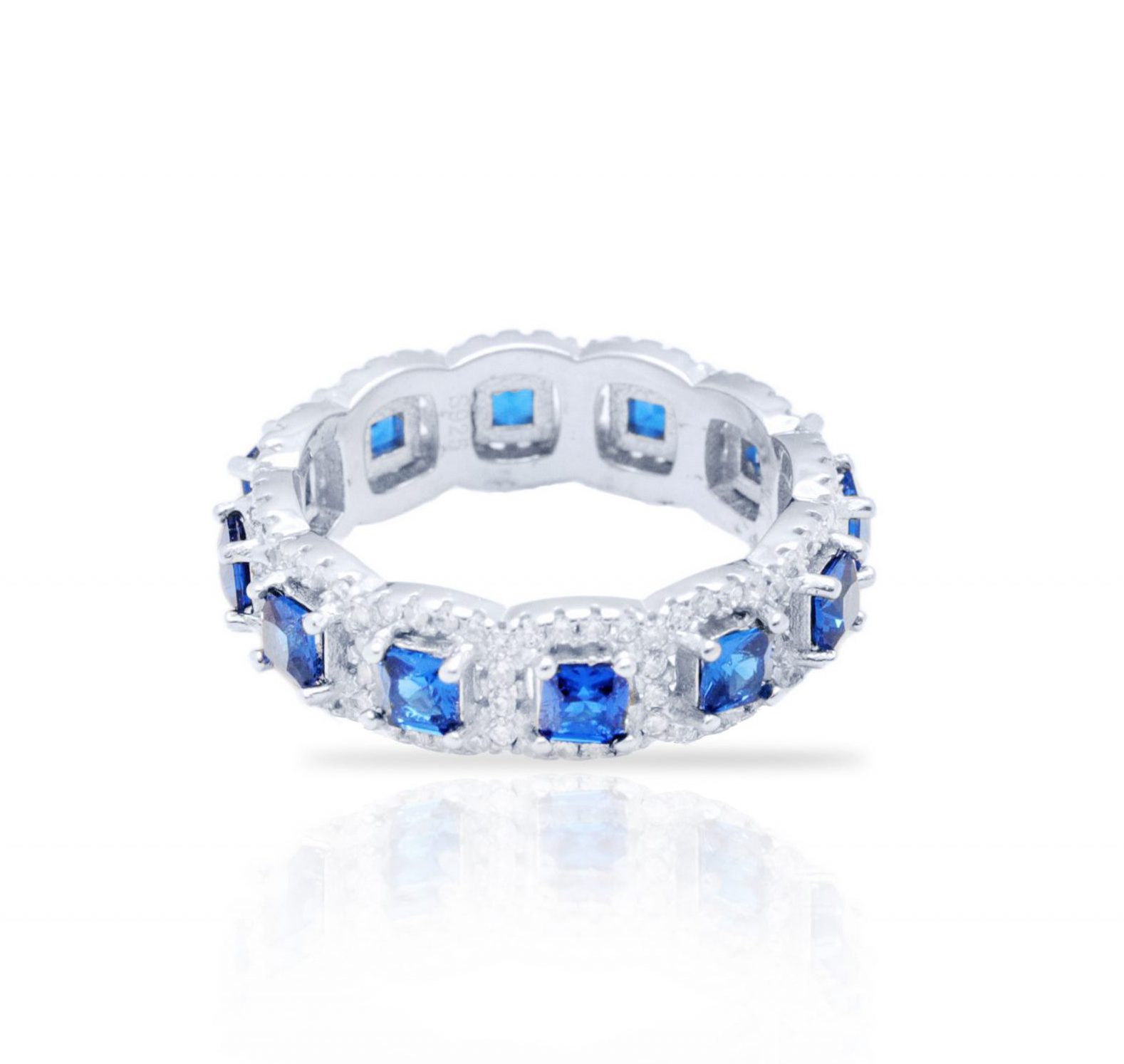 טבעת איטרניטי משובצת זרקנים כחולים וזירקונים מכסף 925 טהור לאישה. הטבעת משובצת בזירקוני AAAA בחיתוך יהלום. מצופה ברודיום להגנה מפני התחמצנות ושריטות. המוצר מגיע באריזת מתנה מהודרת וממותגת! חצי שנה אחריות.