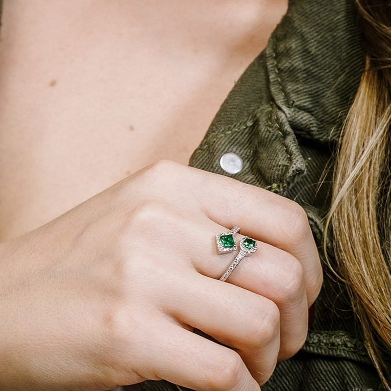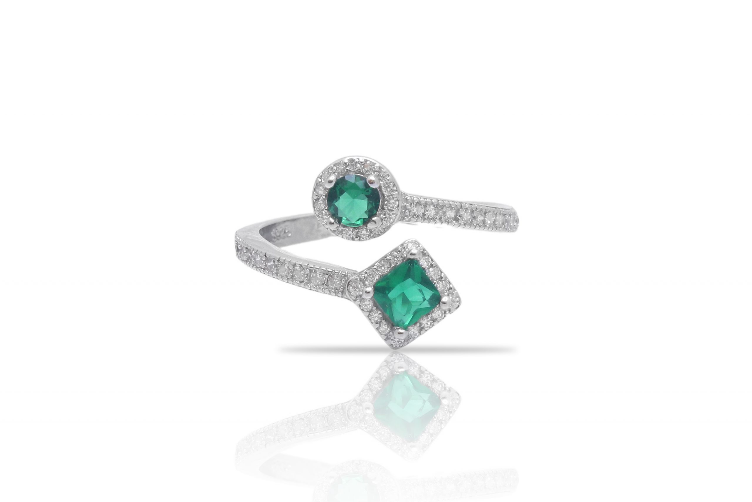 טבעת אלמנט עגול ומשולש שיבוץ ירוק