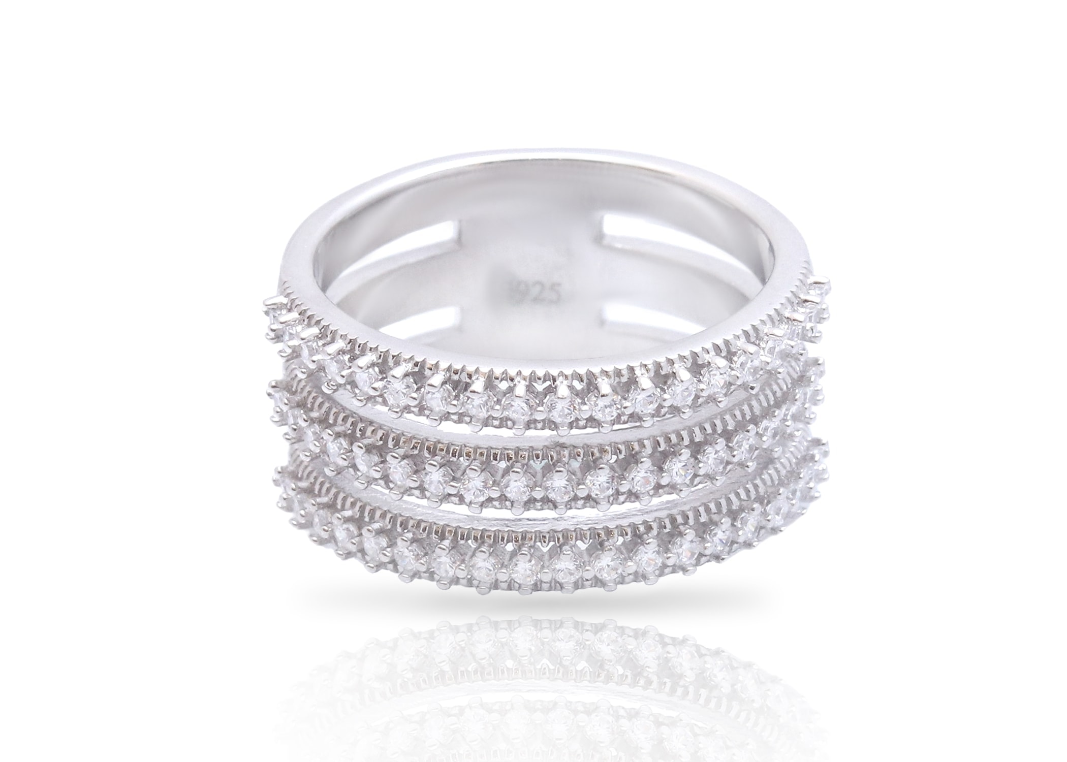 טבעת אלמנט שלוש רצועות משובצת זירקונים מכסף 925 טהור לאישה. הטבעת משובצת בזירקון AAAA בחיתוך יהלום. מצופה ברודיום להגנה מפני התחמצנות ושריטות. המוצר מגיע באריזת מתנה מהודרת וממותגת! חצי שנה אחריות.