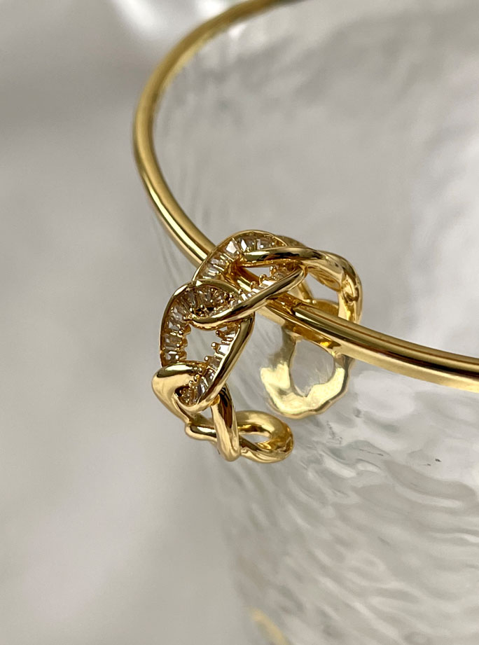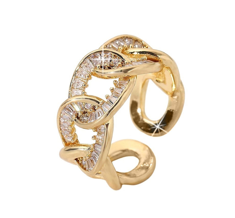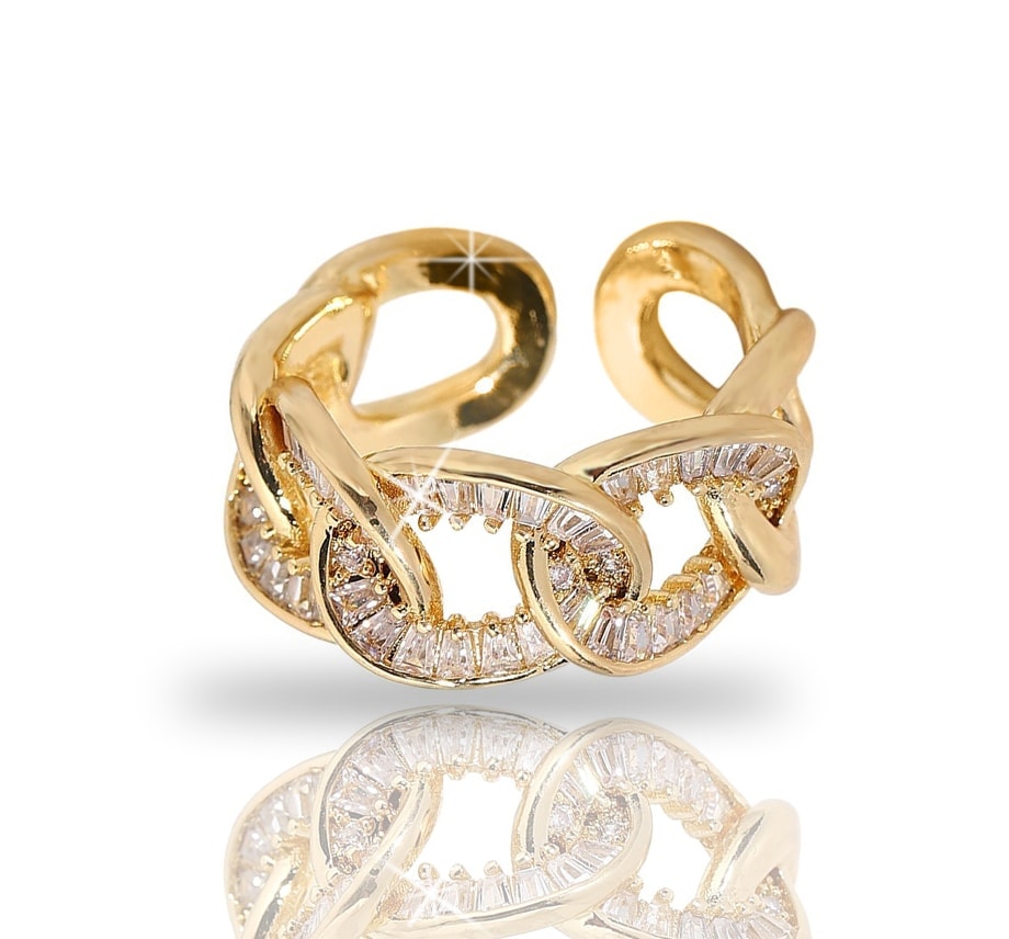טבעת גורמט בגטים פתוחה משובצת בבגטים, הטבעת עשויה מציפוי זהב לאישה. הטבעת משובצת בזירקוני AAAA בחיתוך יהלום. המוצר מגיע באריזת מתנה מהודרת וממותגת! חצי שנה אחריות.