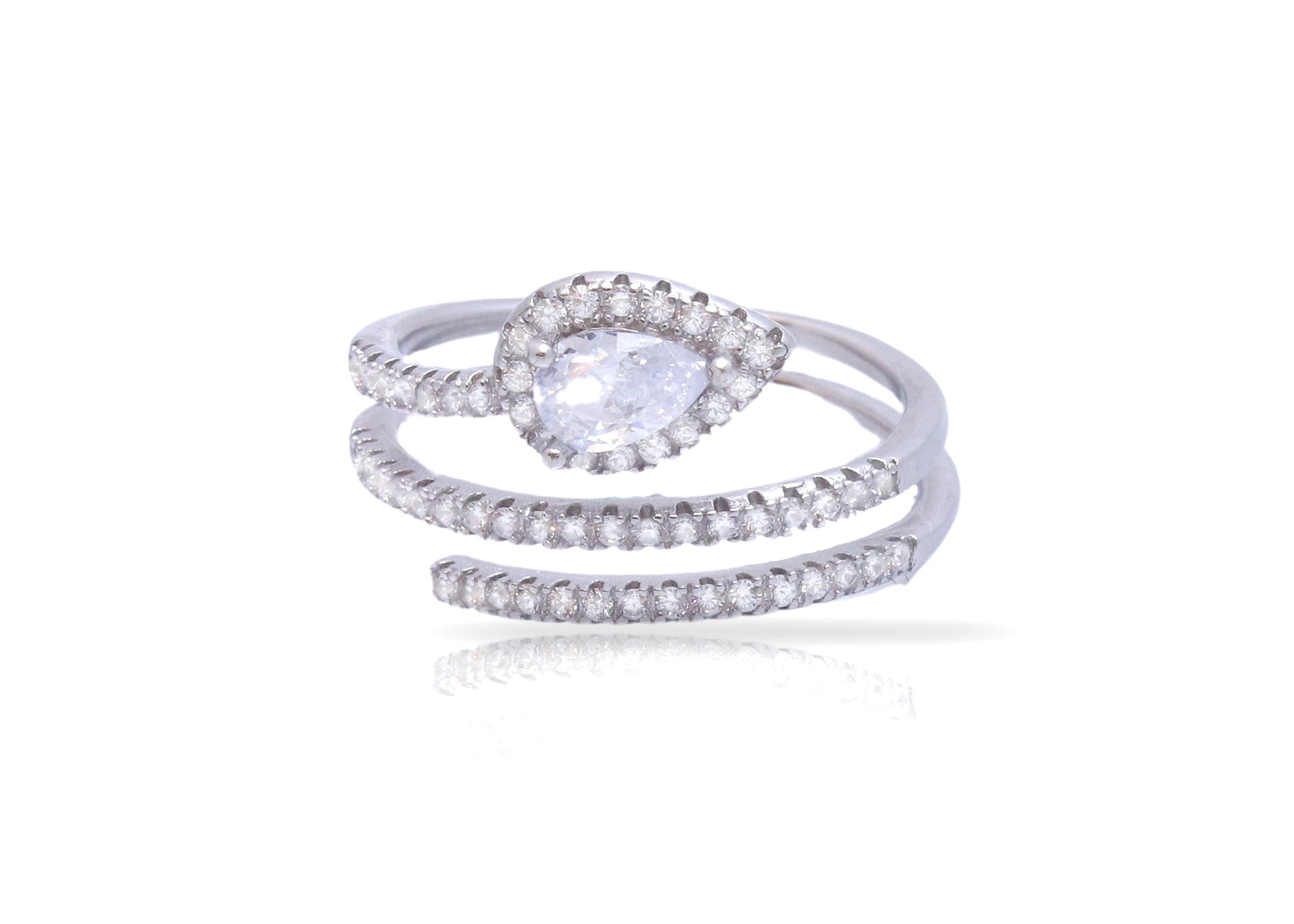 טבעת טיפה שלוש רצועות משובצת זירקונים מכסף 925 טהור לאישה. הטבעת משובצת בזירקוני AAAA בחיתוך יהלום. מצופה ברודיום להגנה מפני התחמצנות ושריטות. המוצר מגיע באריזת מתנה מהודרת וממותגת! חצי שנה אחריות.