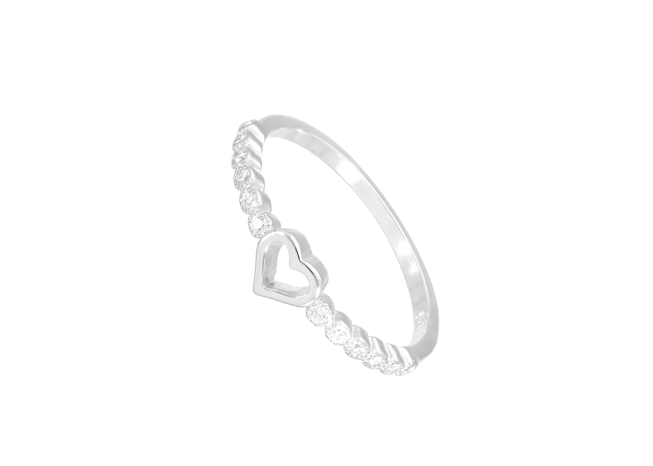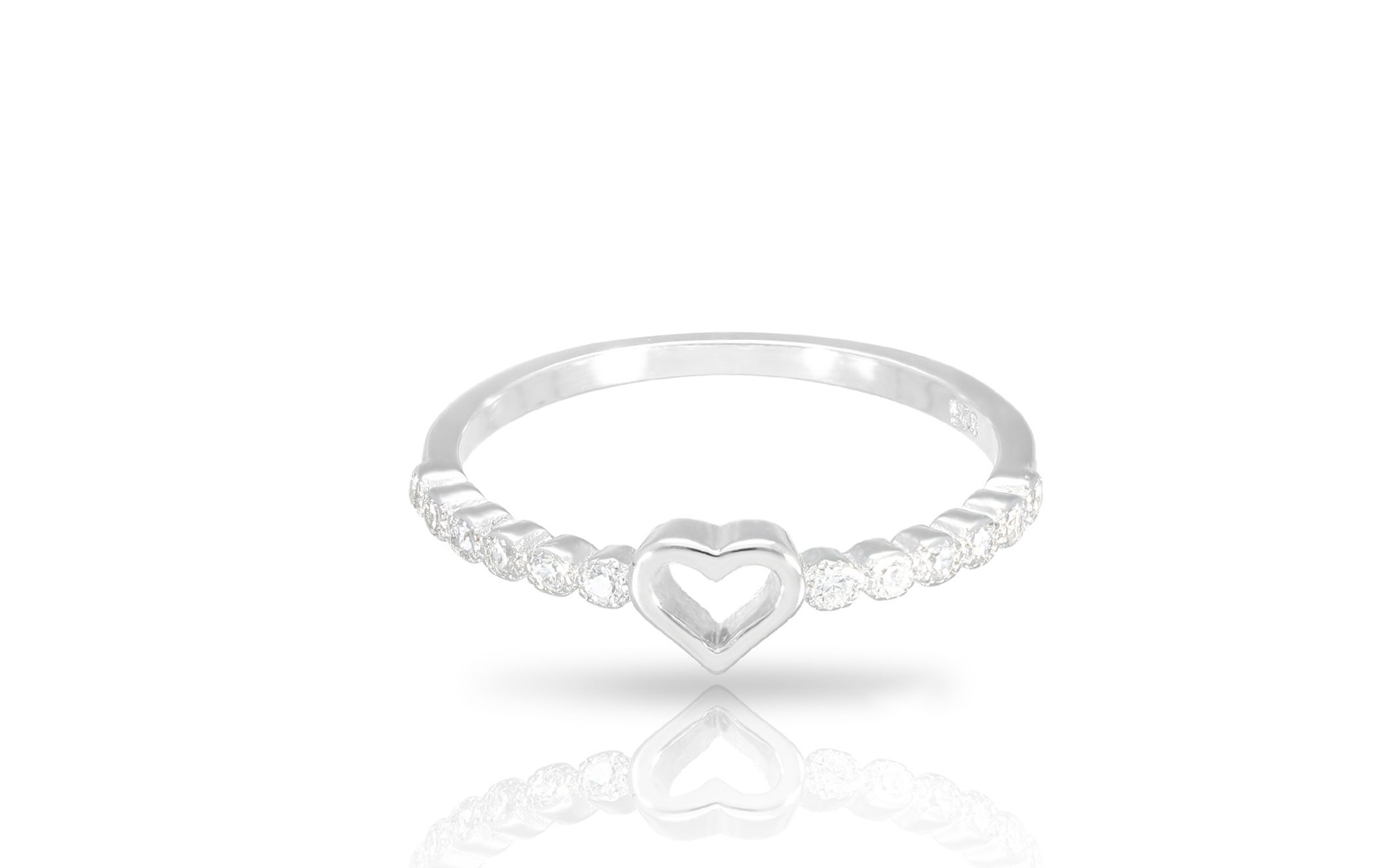 טבעת כסף לב חלול קטן משובצת זירקונים מכסף 925 טהור לאישה. הטבעת משובצת בזירקוני AAAA בחיתוך יהלום. מצופה ברודיום להגנה מפני התחמצנות ושריטות. המוצר מגיע באריזת מתנה מהודרת וממותגת! חצי שנה אחריות.