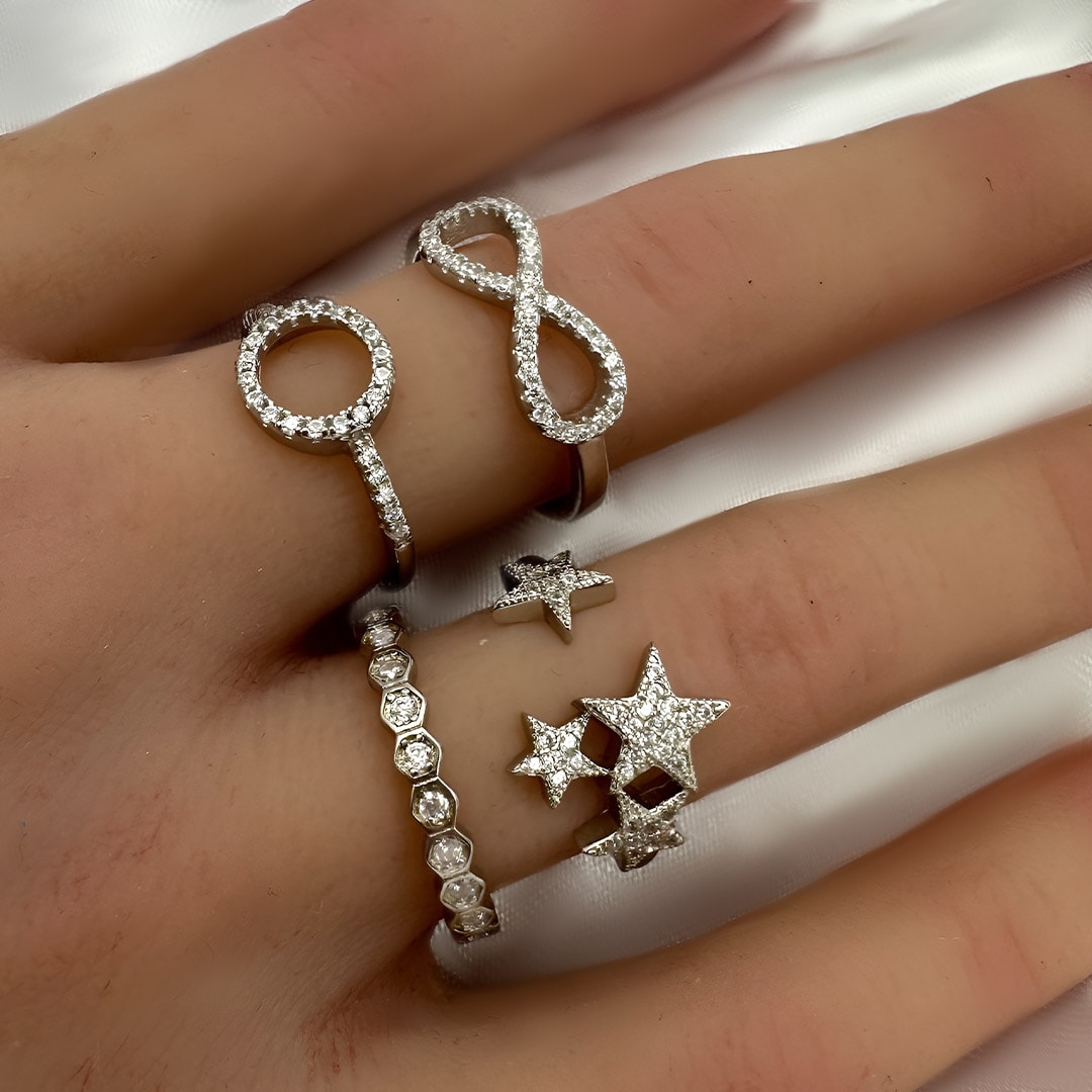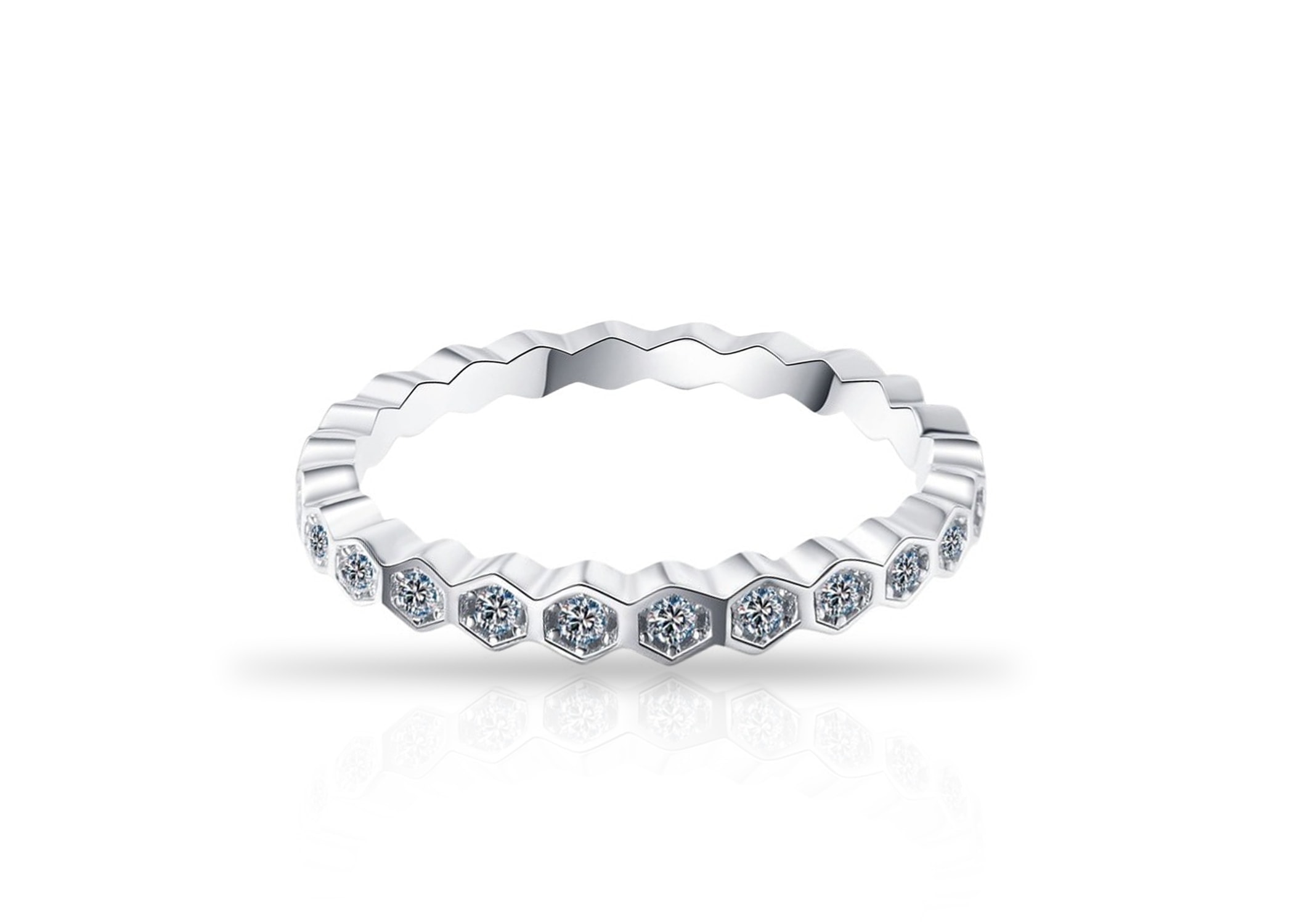 טבעת כסף משושים משובצים זירקונים מכסף 925 טהור לאישה. הטבעת משובצת בזירקוני AAAA בחיתוך יהלום. מצופה ברודיום להגנה מפני התחמצנות ושריטות. המוצר מגיע באריזת מתנה מהודרת וממותגת! חצי שנה אחריות.