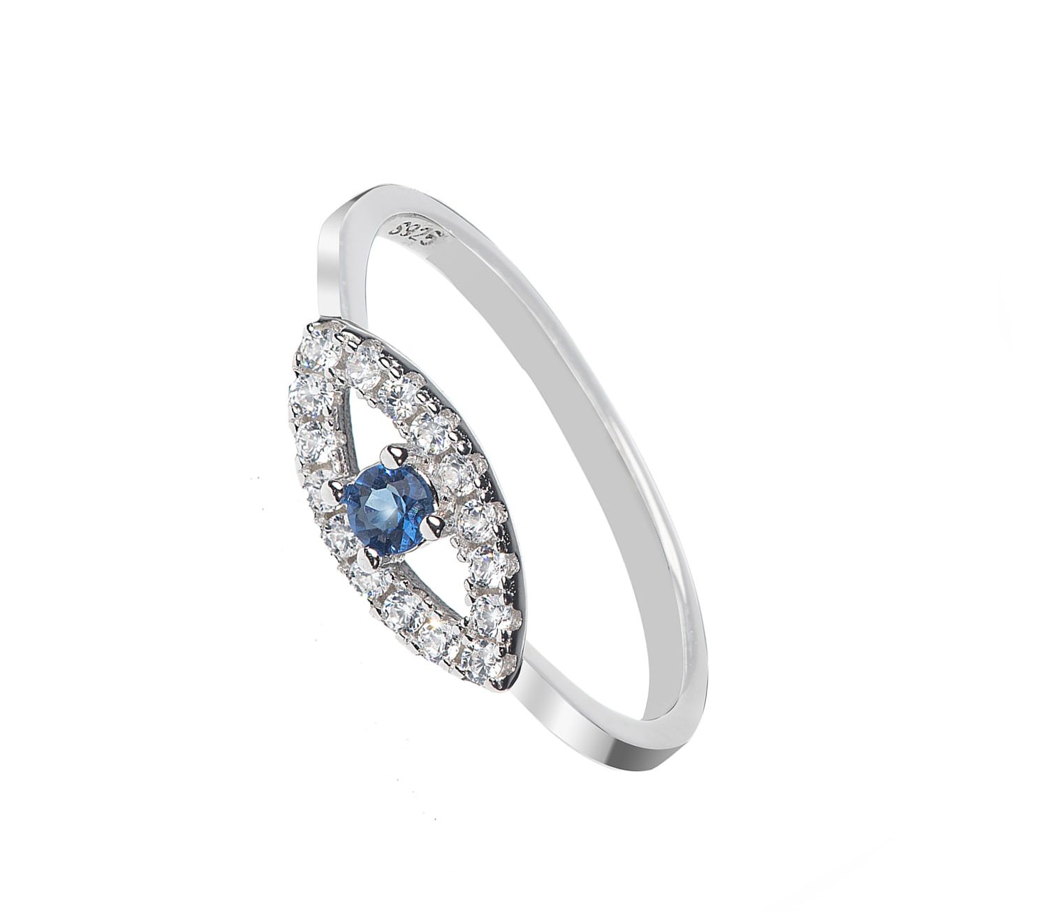 טבעת כסף עין בינונית שיבוץ כחול