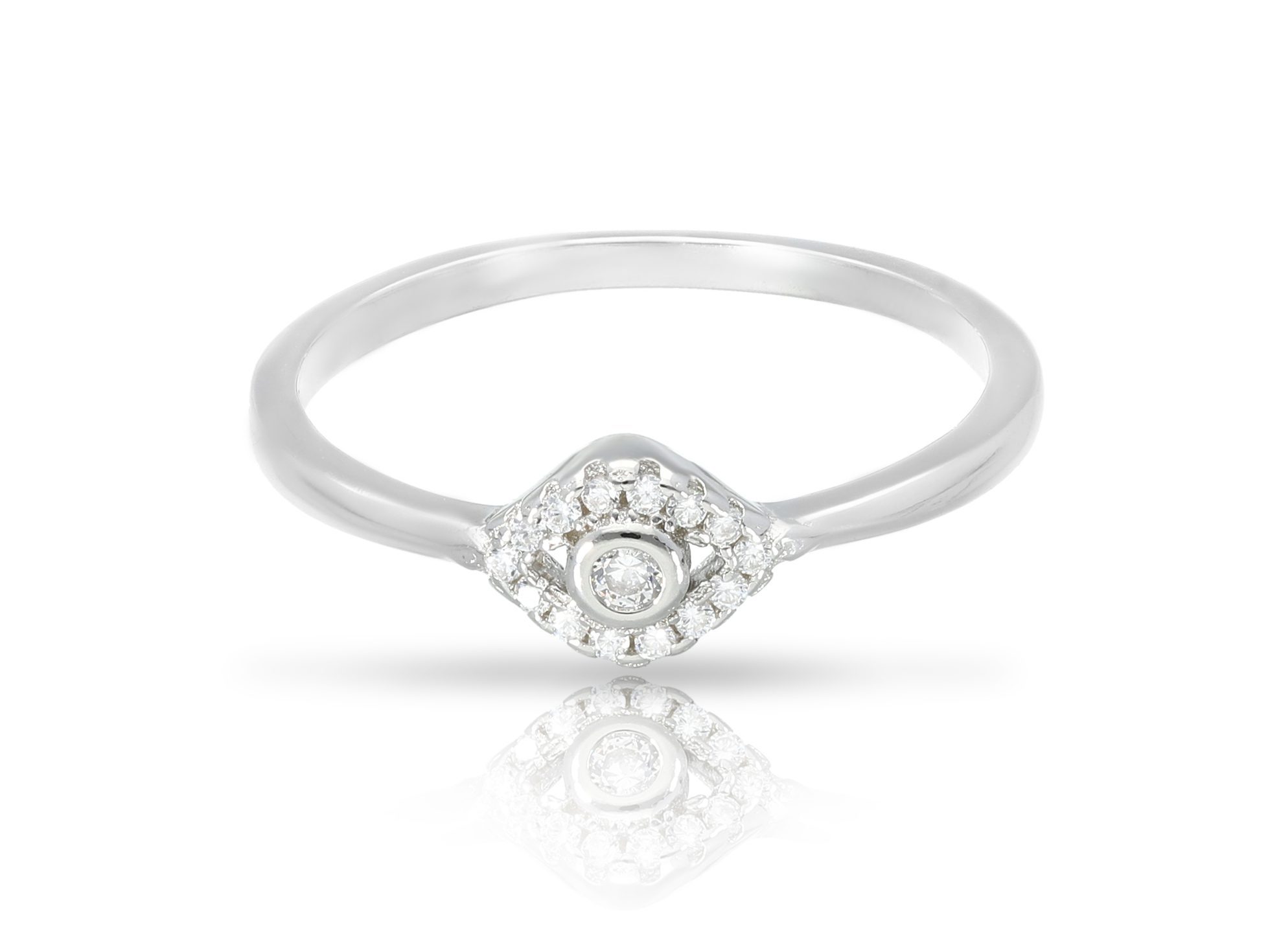 טבעת כסף עין קטנה משובצת זירקונים מכסף 925 טהור לאישה. הטבעת משובצת בזירקוני AAAA בחיתוך יהלום. מצופה ברודיום להגנה מפני התחמצנות ושריטות. המוצר מגיע באריזת מתנה מהודרת וממותגת! חצי שנה אחריות.