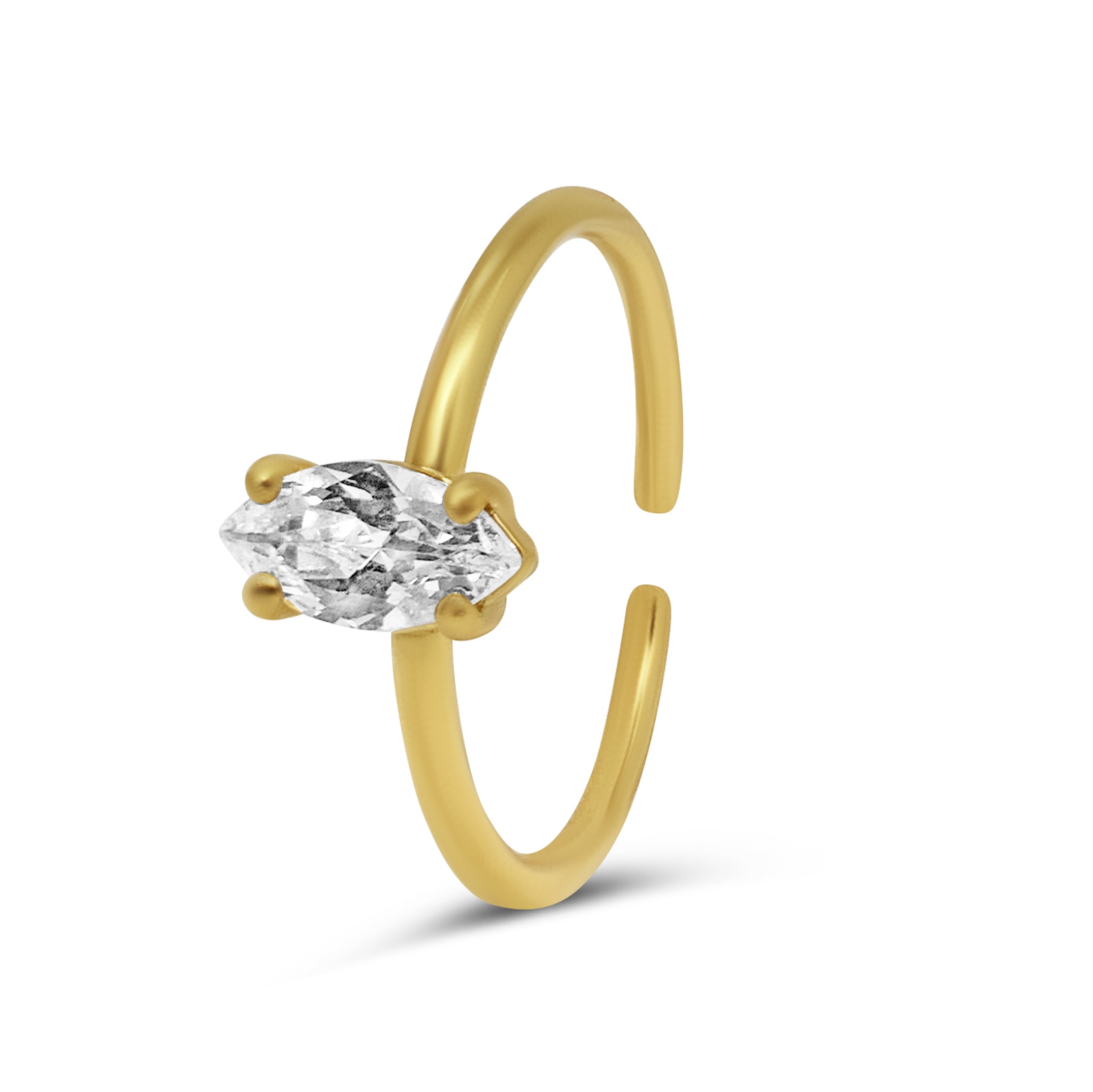 טבעת סוליטר מרקיזה פתוחה – הטבעת משובצת בזירקון בצורת מריקזה, הטבעת פתוחה ולכן מתאימה לכל המידות
