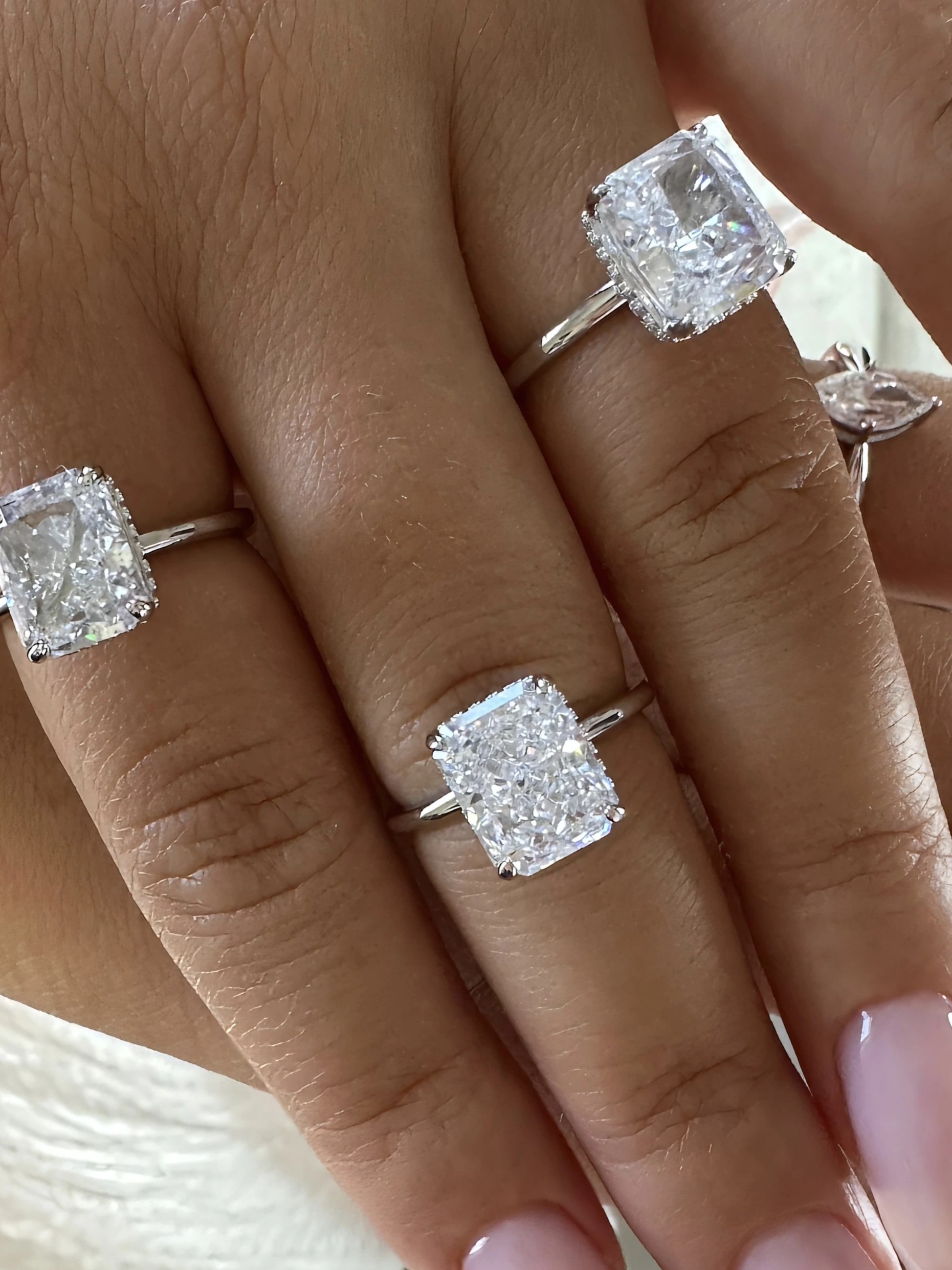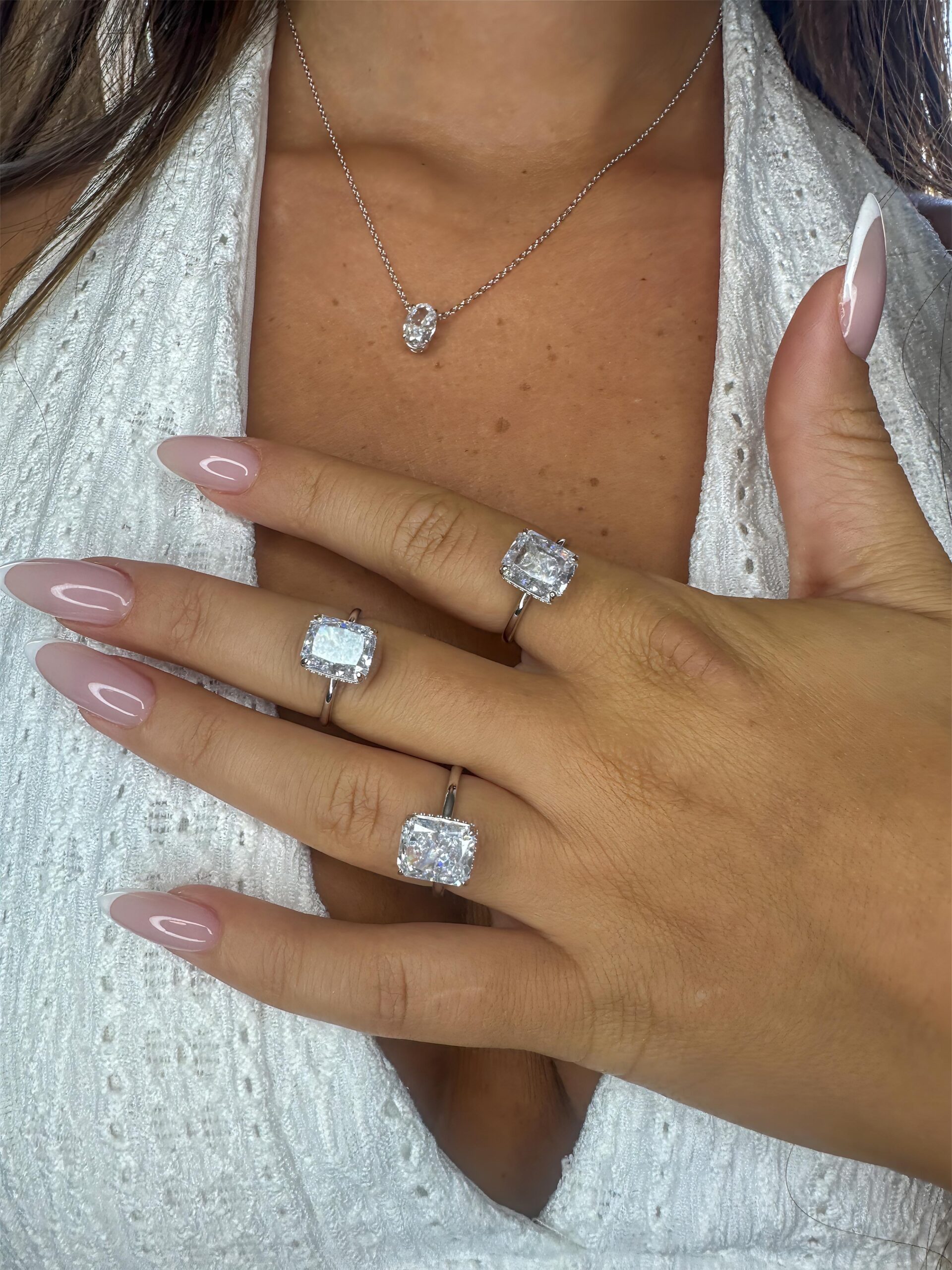טבעת שבמרכזה שובץ זירקון מרהיב בדרגת 8A. זירקון מרובע גדול במיוחד שנחתך בחיתוך רדיאנט. כל חיתוך מפזר ניצוץ מזוויות שונות בכל תזוזה עדינה של היד.