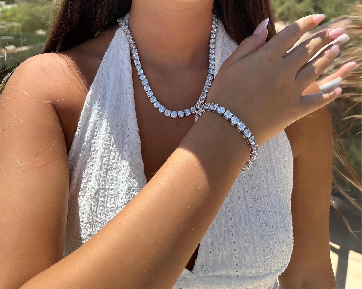שרשרת + צמיד טניס עבים בעובי 7 מ"מ + זוג עגילים • כסף 925 טהור בציפוי רודיום