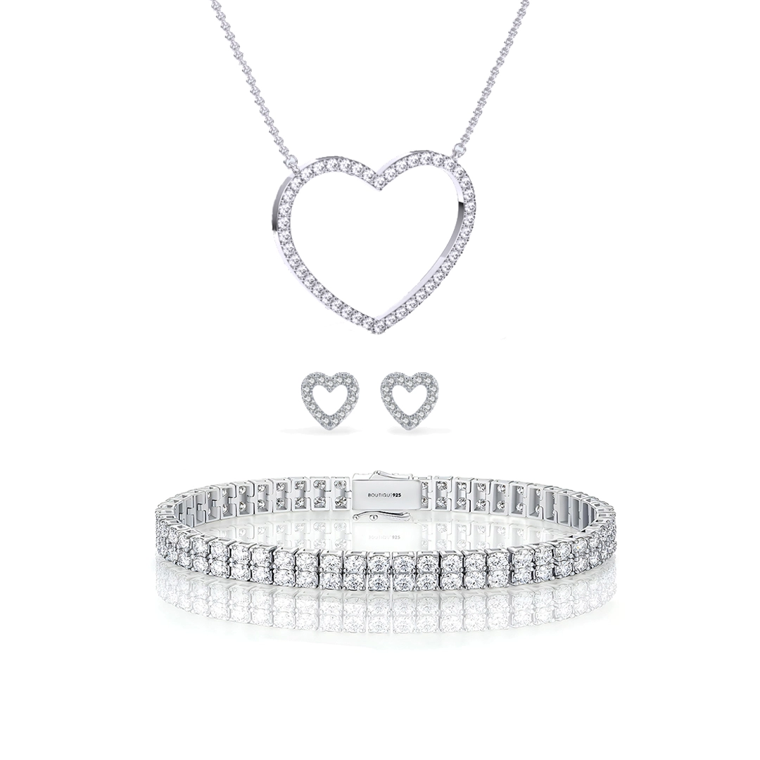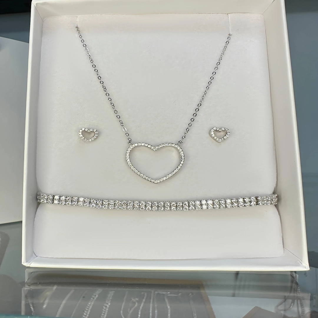 סט תכשיטים יוקרתי מכסף טהור 925 בעיצוב לב