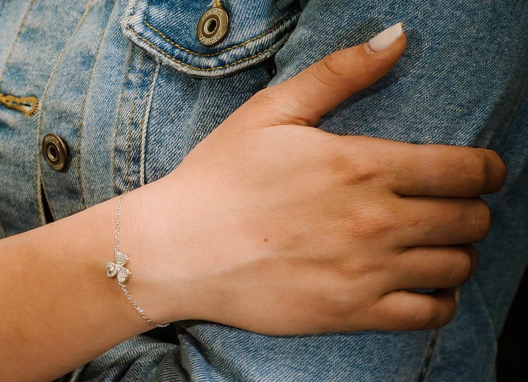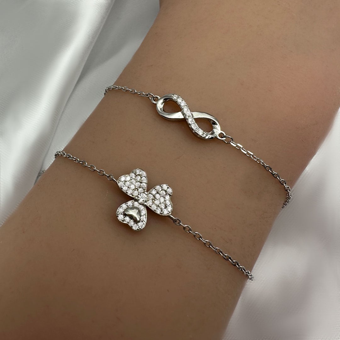צמיד כסף תלתן עם אלמנט לב
