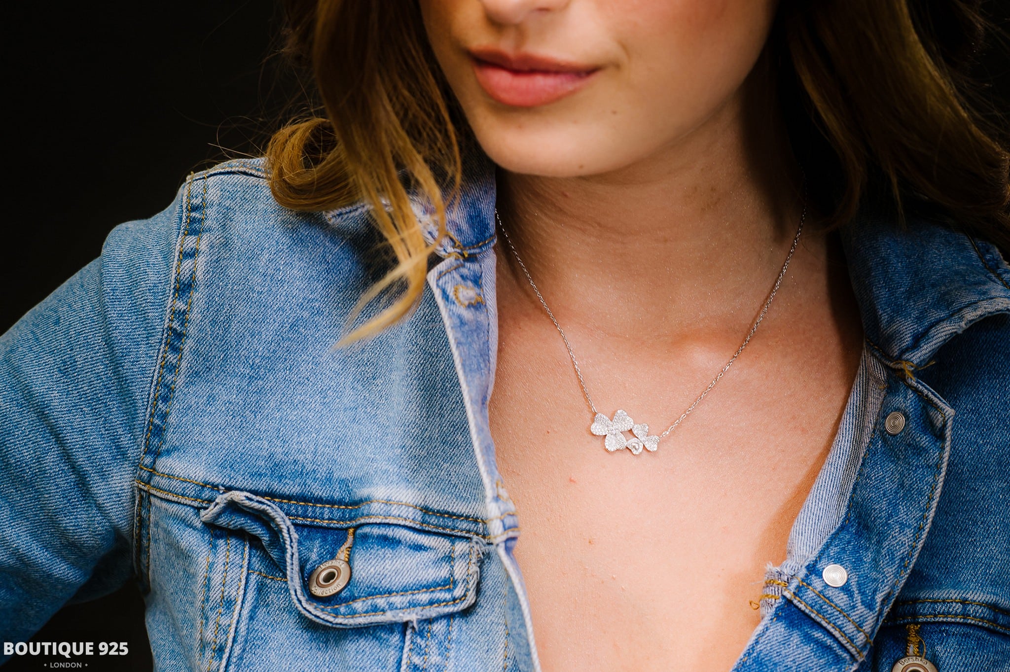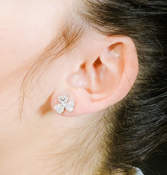 סט עלי תלתן עם לב משובץ זירקונים