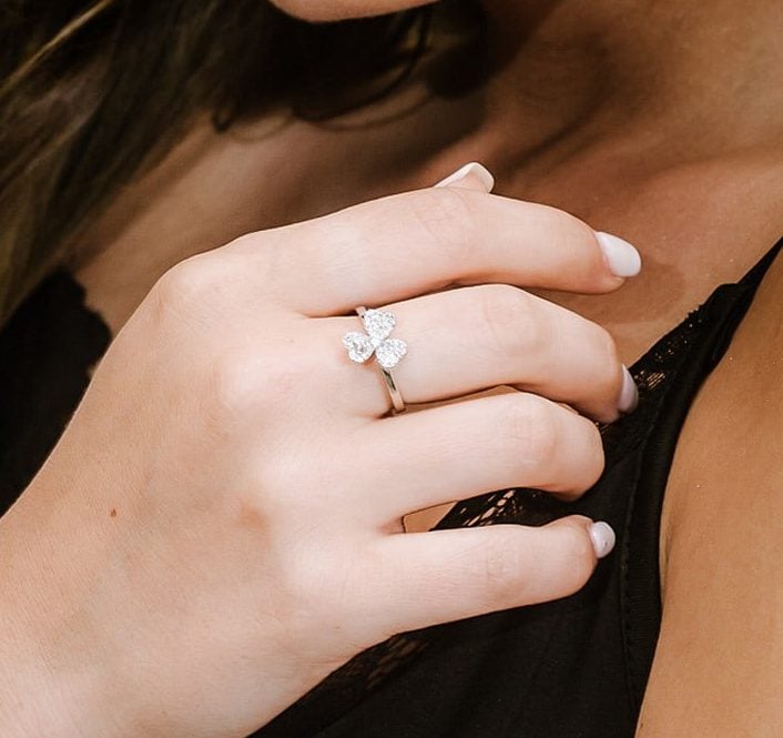 סט עלי תלתן עם לב – שרשרת צמיד טבעת ועגילים, התלתן ידוע כי מסמל מזל אהבה ותקווה.