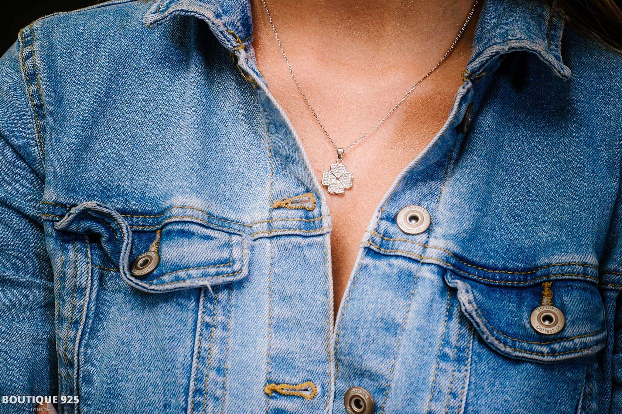סט עלי תלתן משובץ זירקונים
