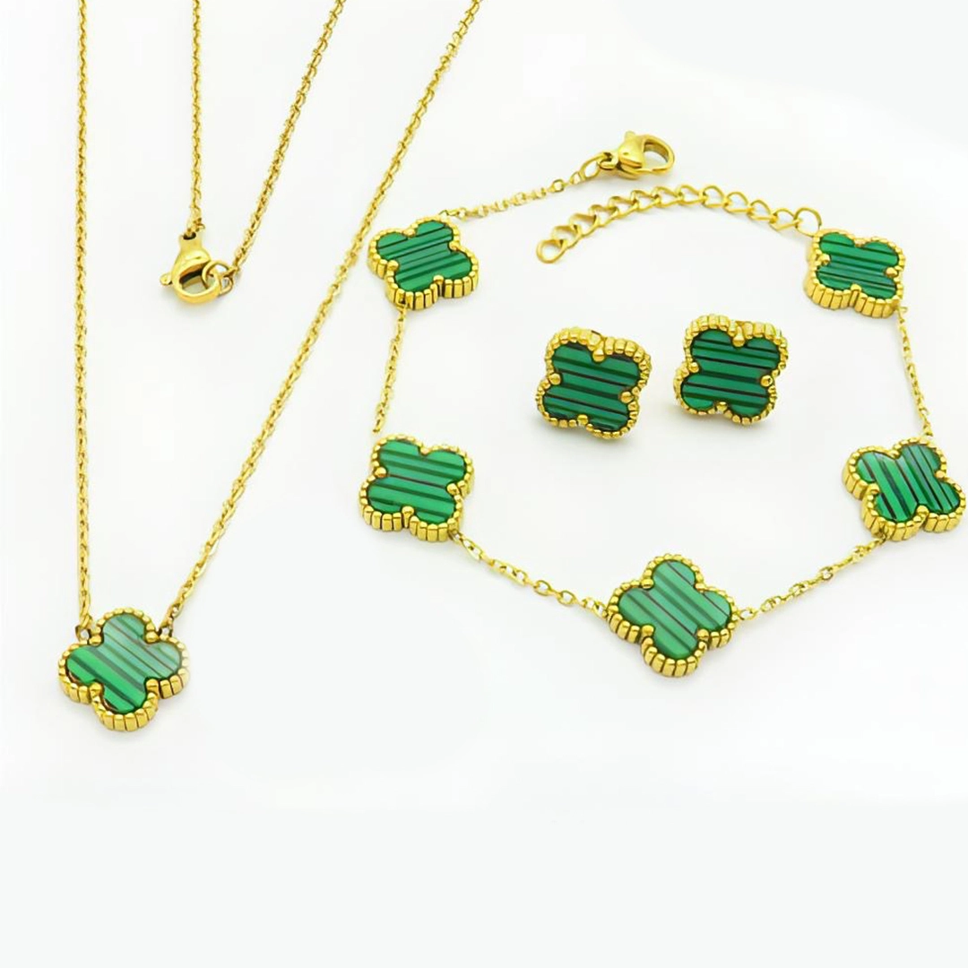 סט עלי תלתן צבע אדום ציפוי זהב 18K
