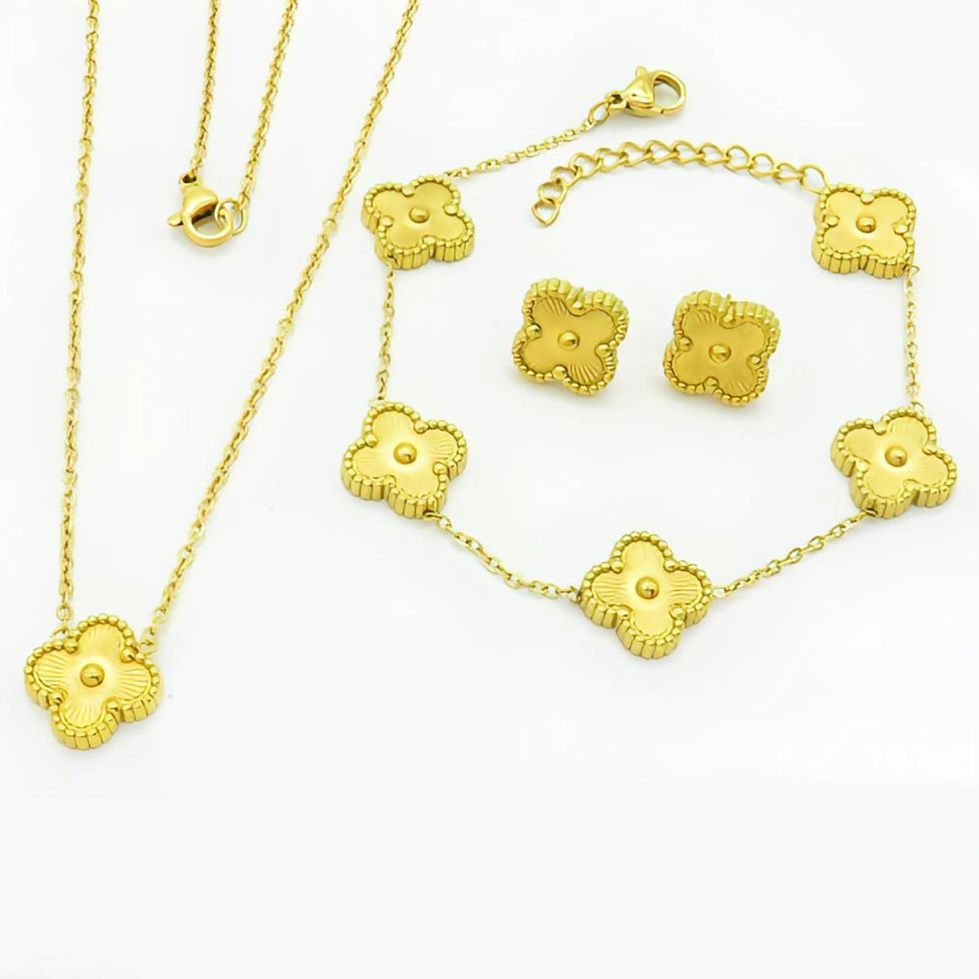 סט עלי תלתן צבע כחול ציפוי זהב 18K