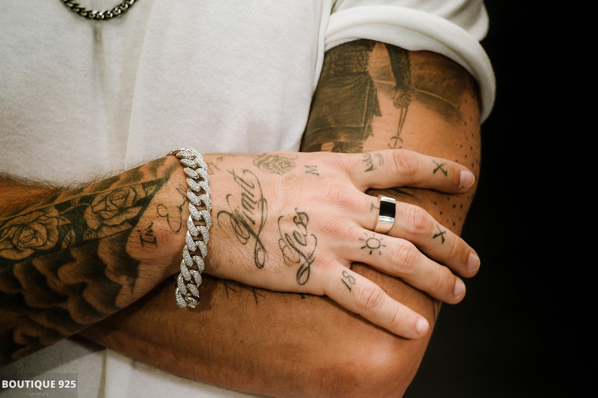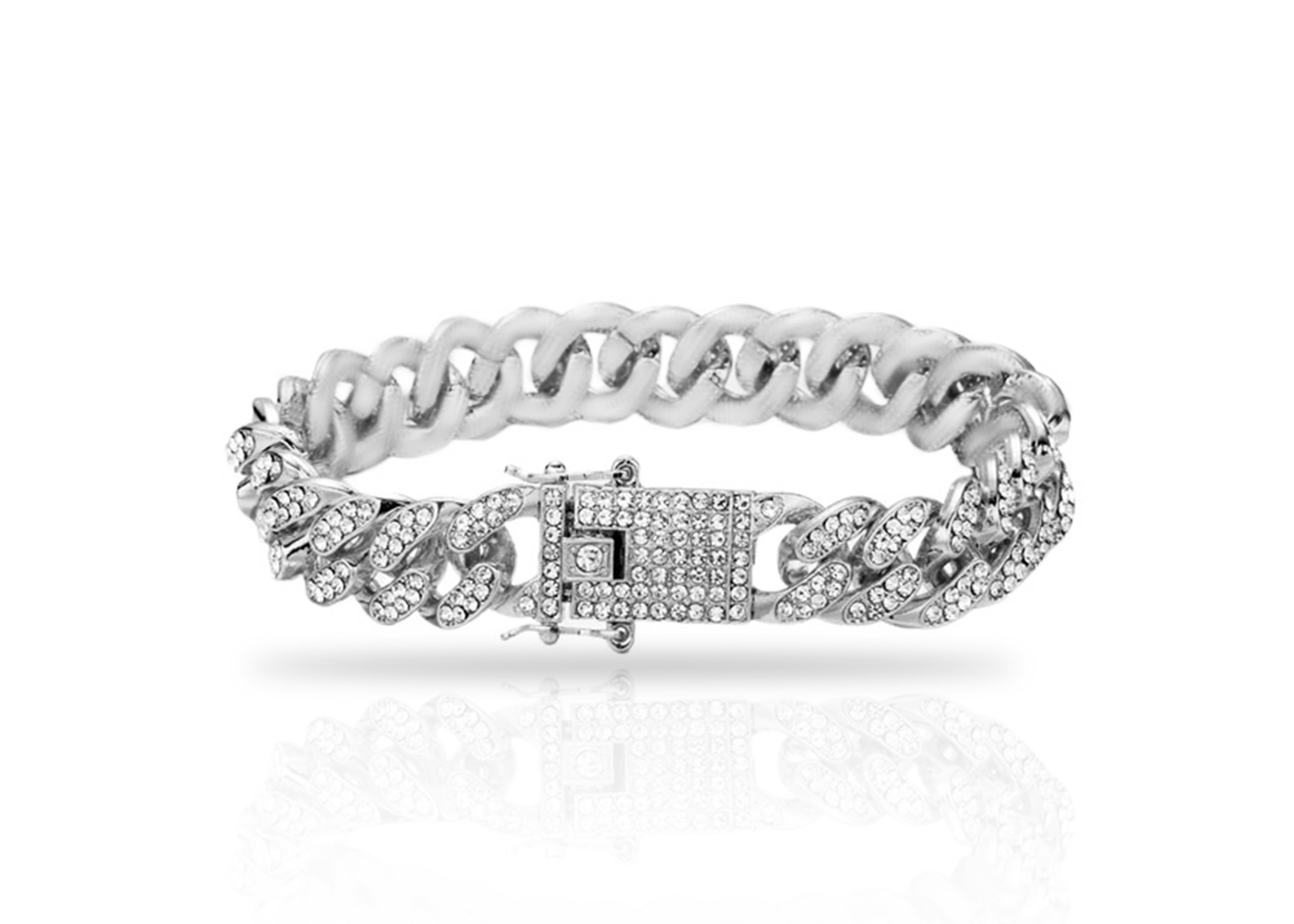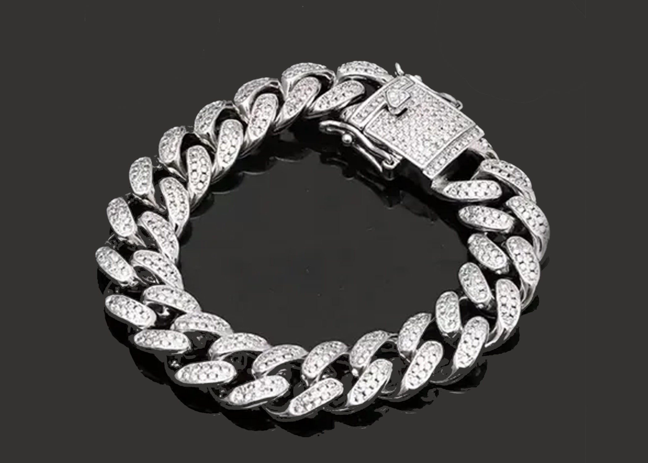 צמיד גורמט כסוף משובץ זירקונים צבע כסף לגבר
