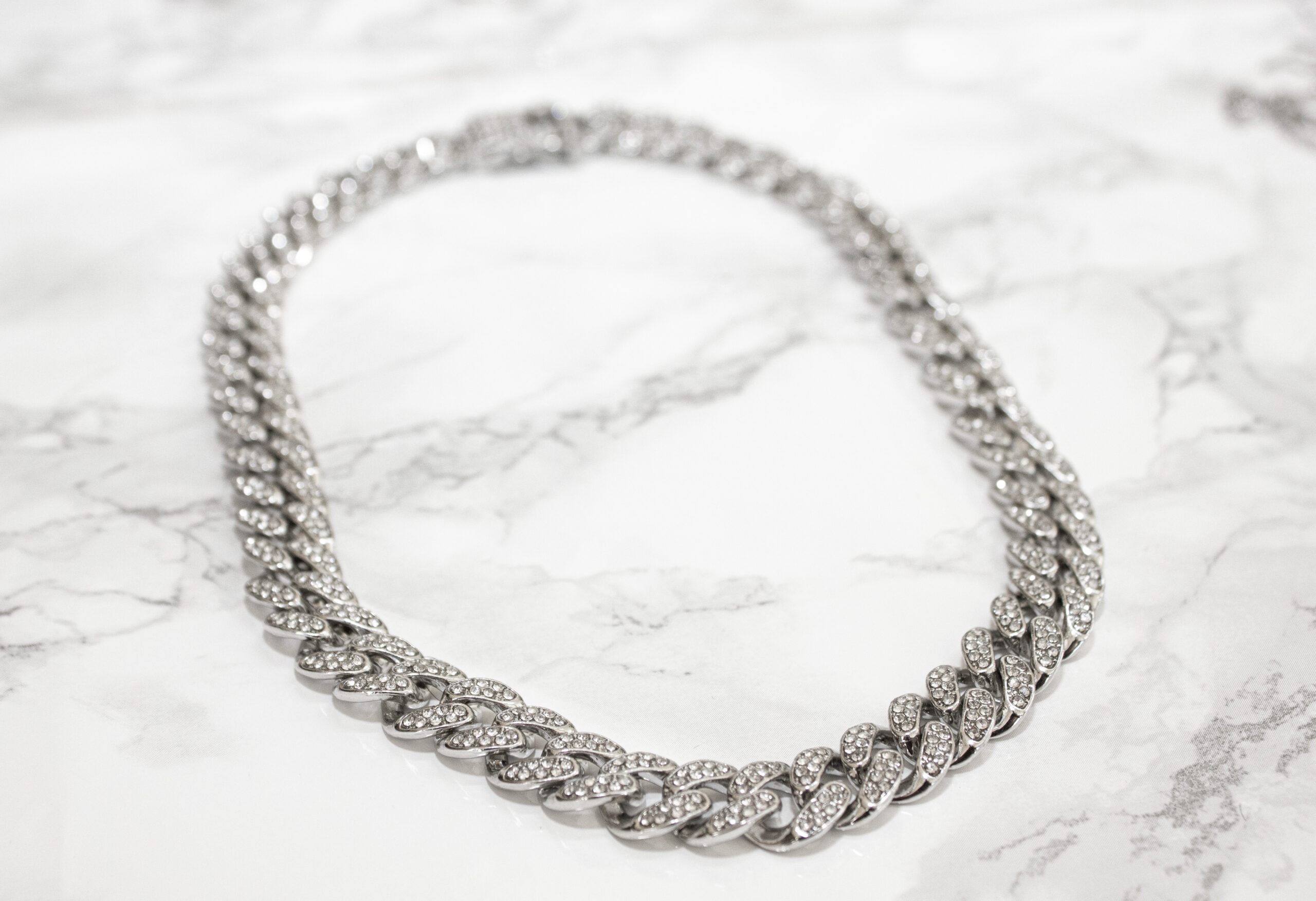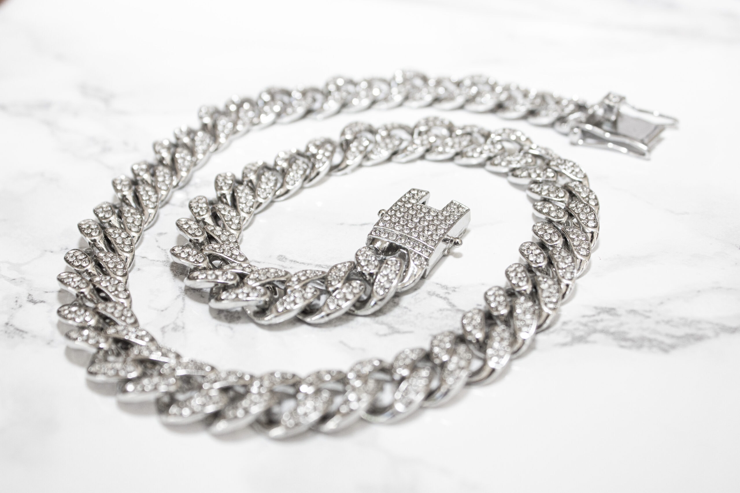 שרשרת גורמט משובצת זירקונים צבע כסף לגבר