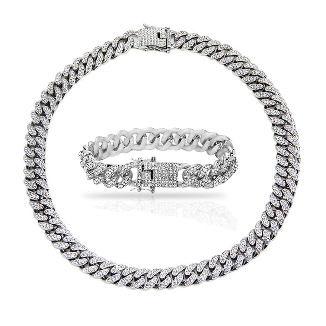 סט שרשרת וצמיד גורמט משובצים זירקונים צבע כסף לגבר