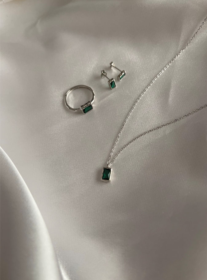 סט תכשיטים איזבל מכסף 925 טהור, שרשרת טבעת ועגילים.
