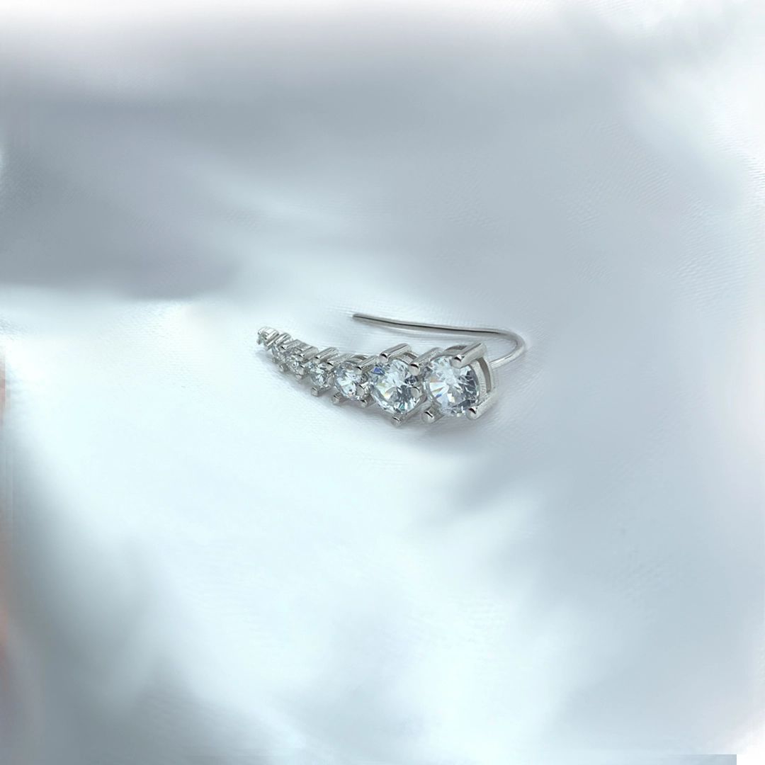 עגילים מטפסים יוקרתיים – עגילי כסף מרהיבים שמשלבים שבעה זירקונים נוצצים בגדלים מדורגים. העגילים מתפתלים בעדינות לאורך קו האוזן, יוצרים אשליה של מספר עגילים במראה אחד מרשים. נדרש חור בודד בכל אוזן להרכבה קלה ונוחה, באריזה מקבלים זוג עגילים. המראה המושלם לכל אירוע