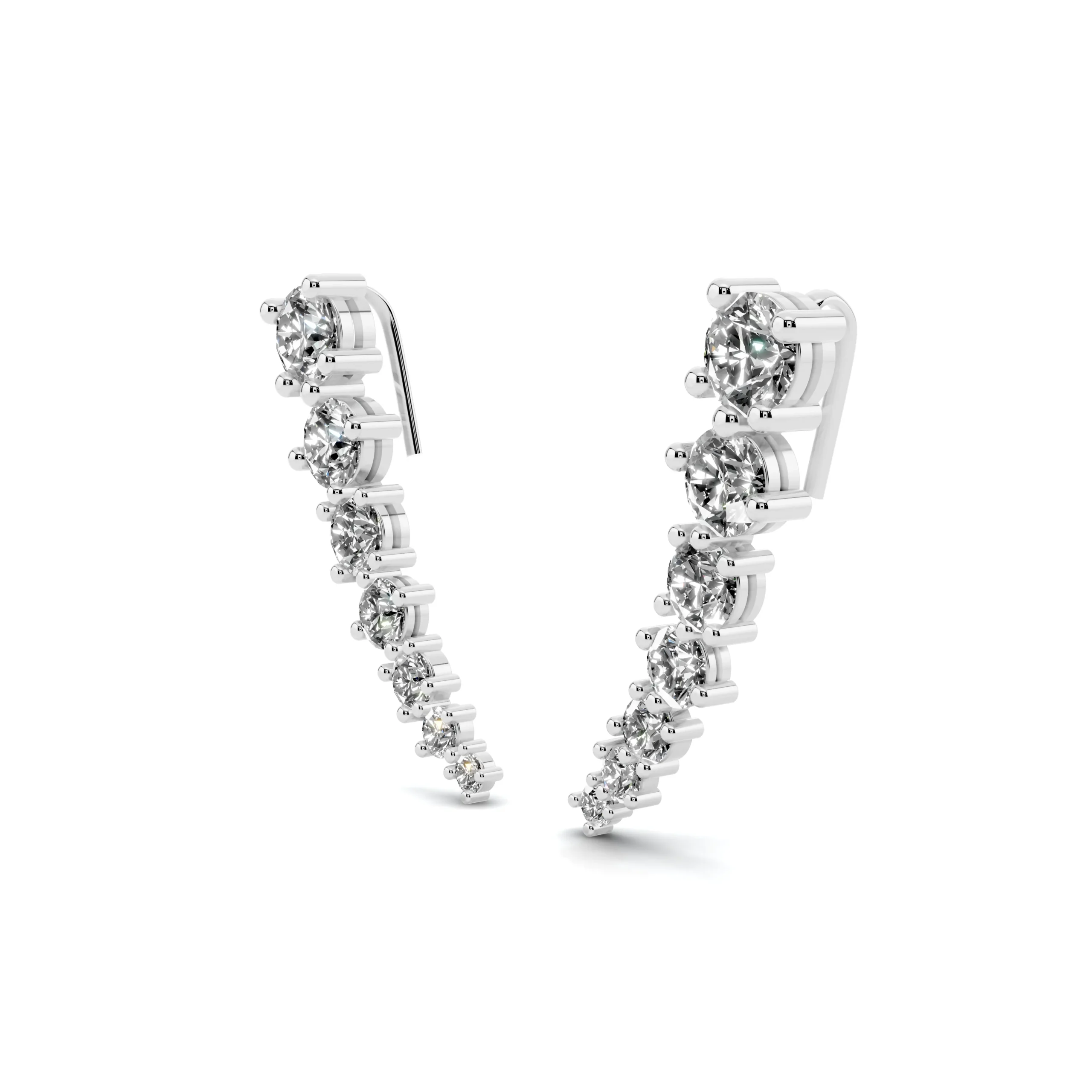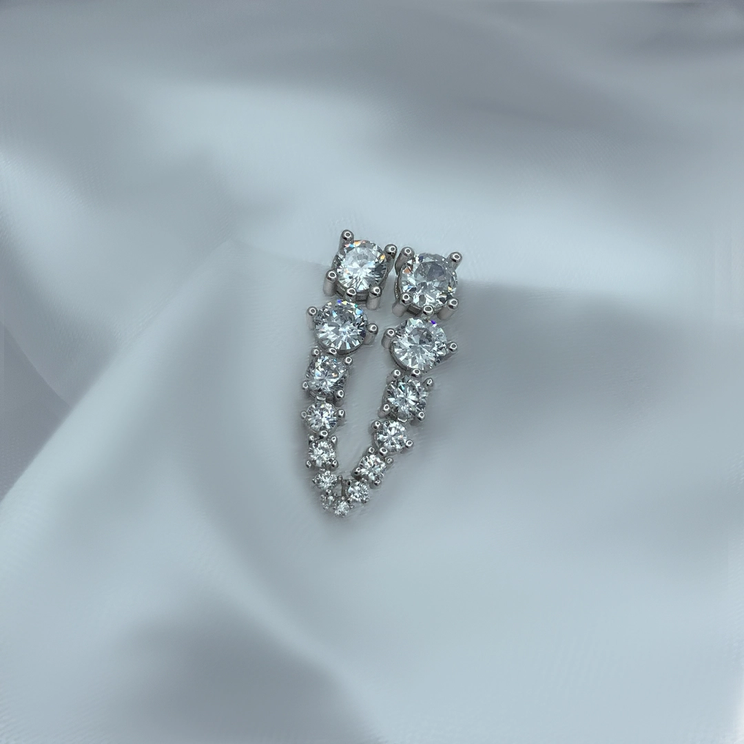 עגילים מטפסים יוקרתיים מכסף 925 לאישה. העגילים משובצים בזירקוני AAAA בגדלים מדורגים. העגילים מצופים ברודיום להגנה מפני התחמצנות ושריטות. זוג העגילים מטפסים מגיעים באריזה מהודרת וממותגת עם מטלית לניקוי תכשיטים ללא עלות וחצי שנה אחריות.