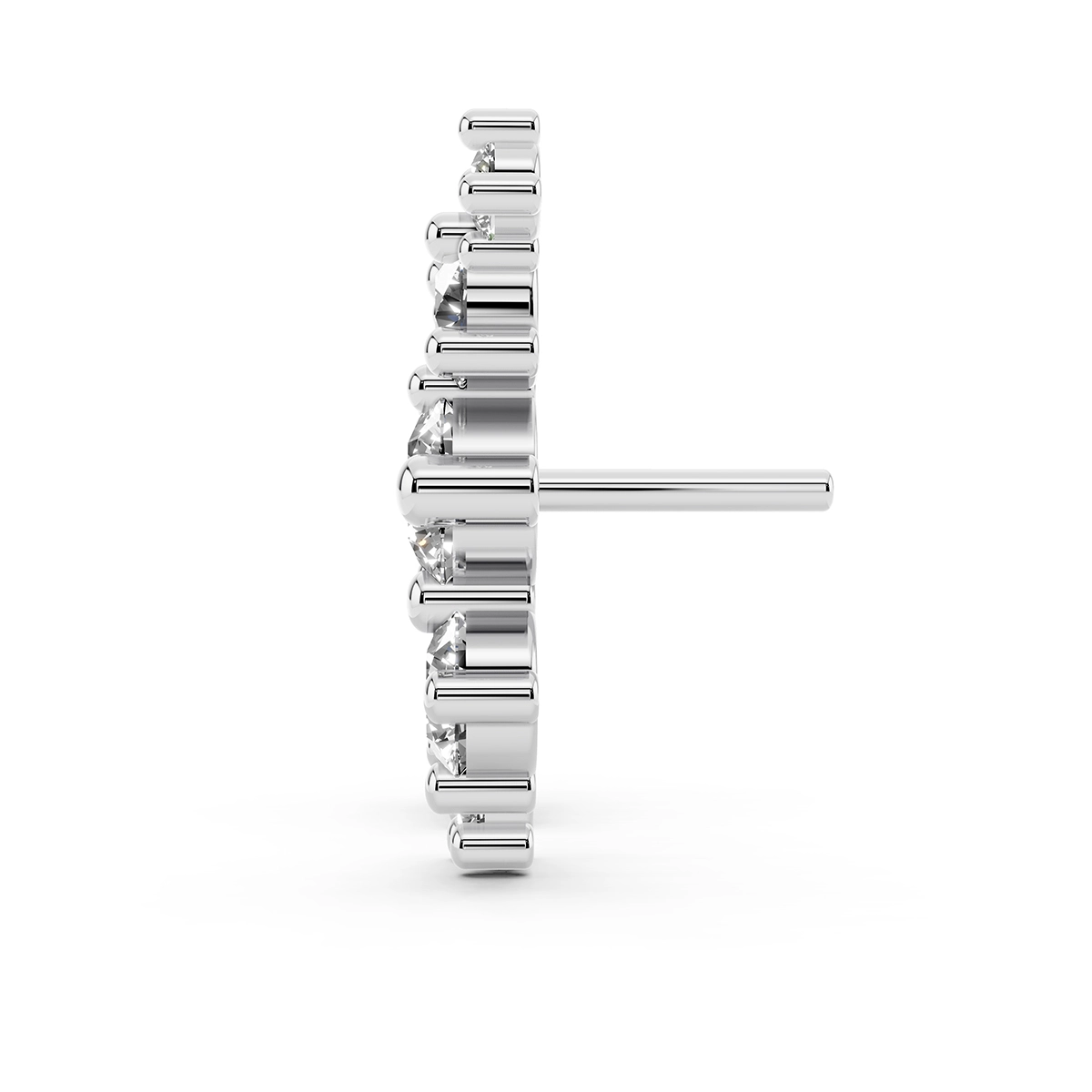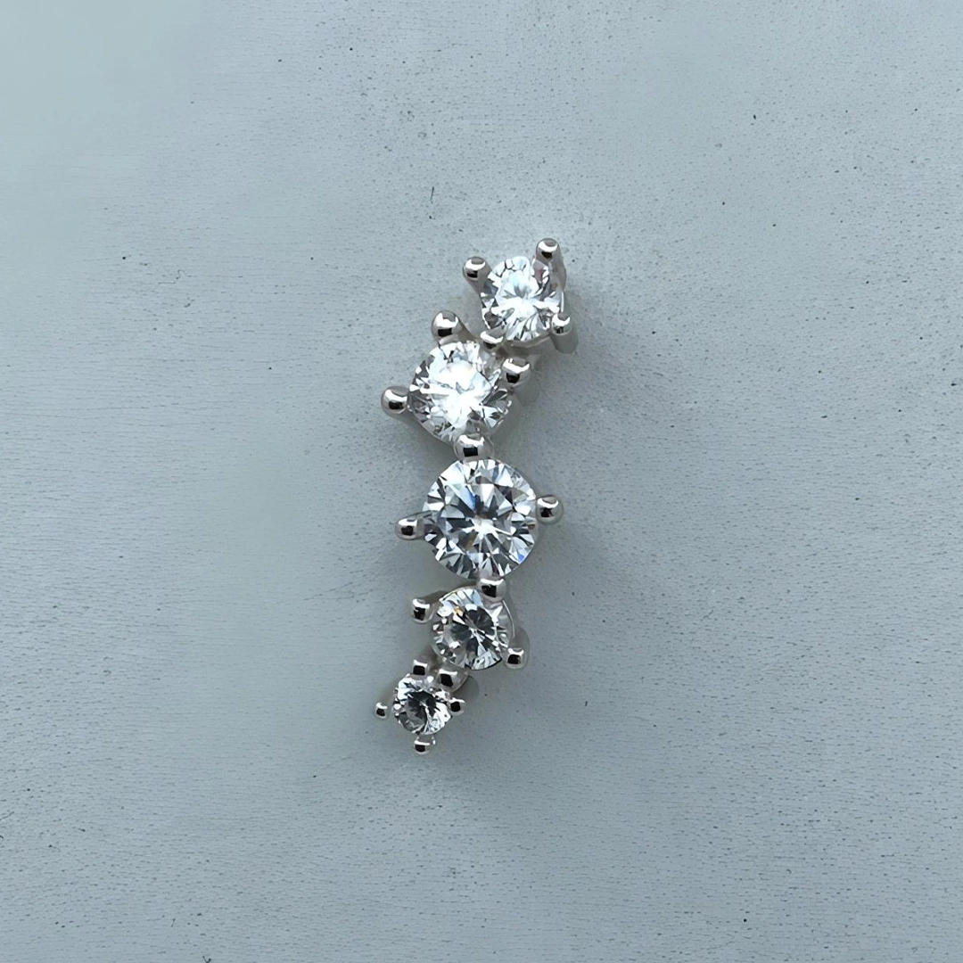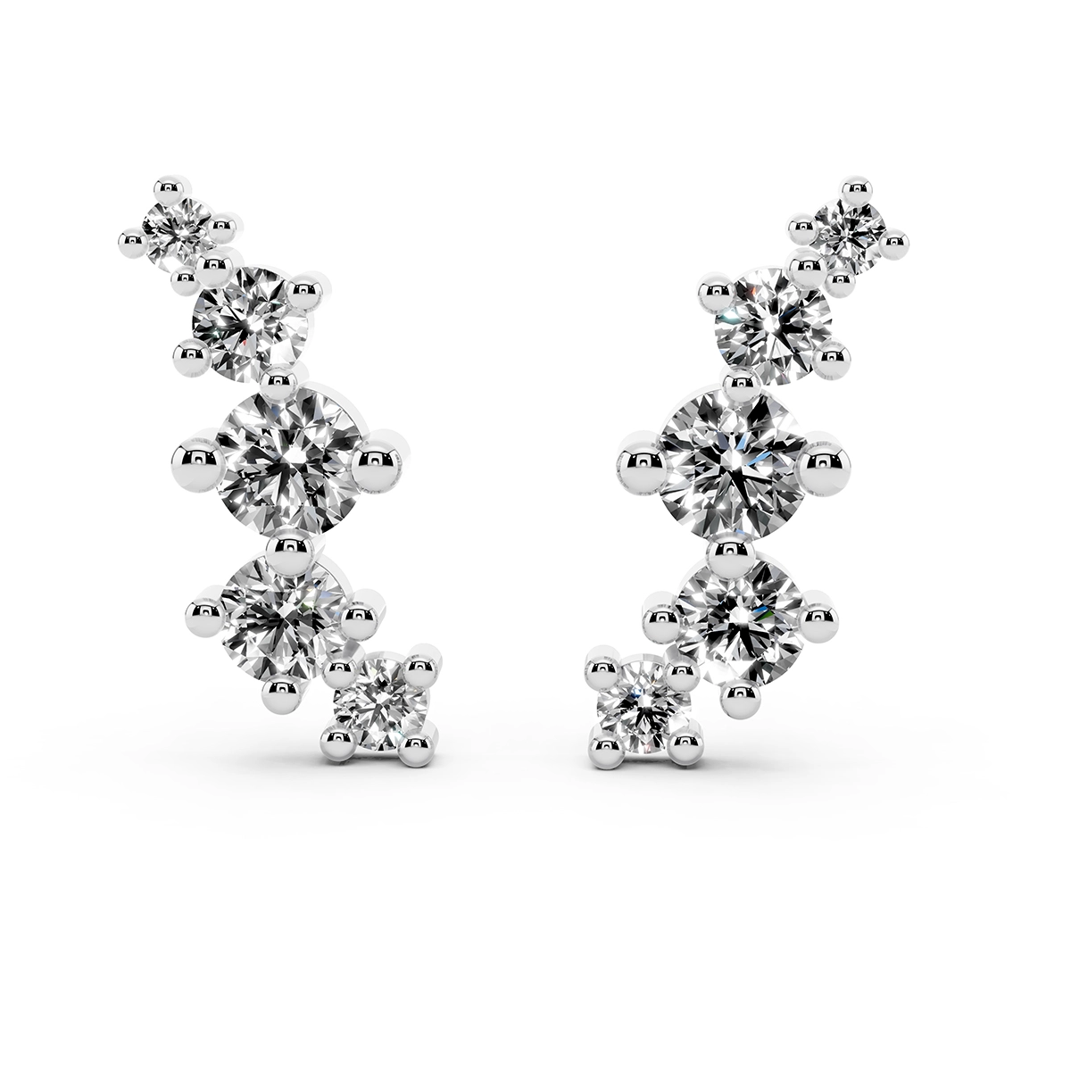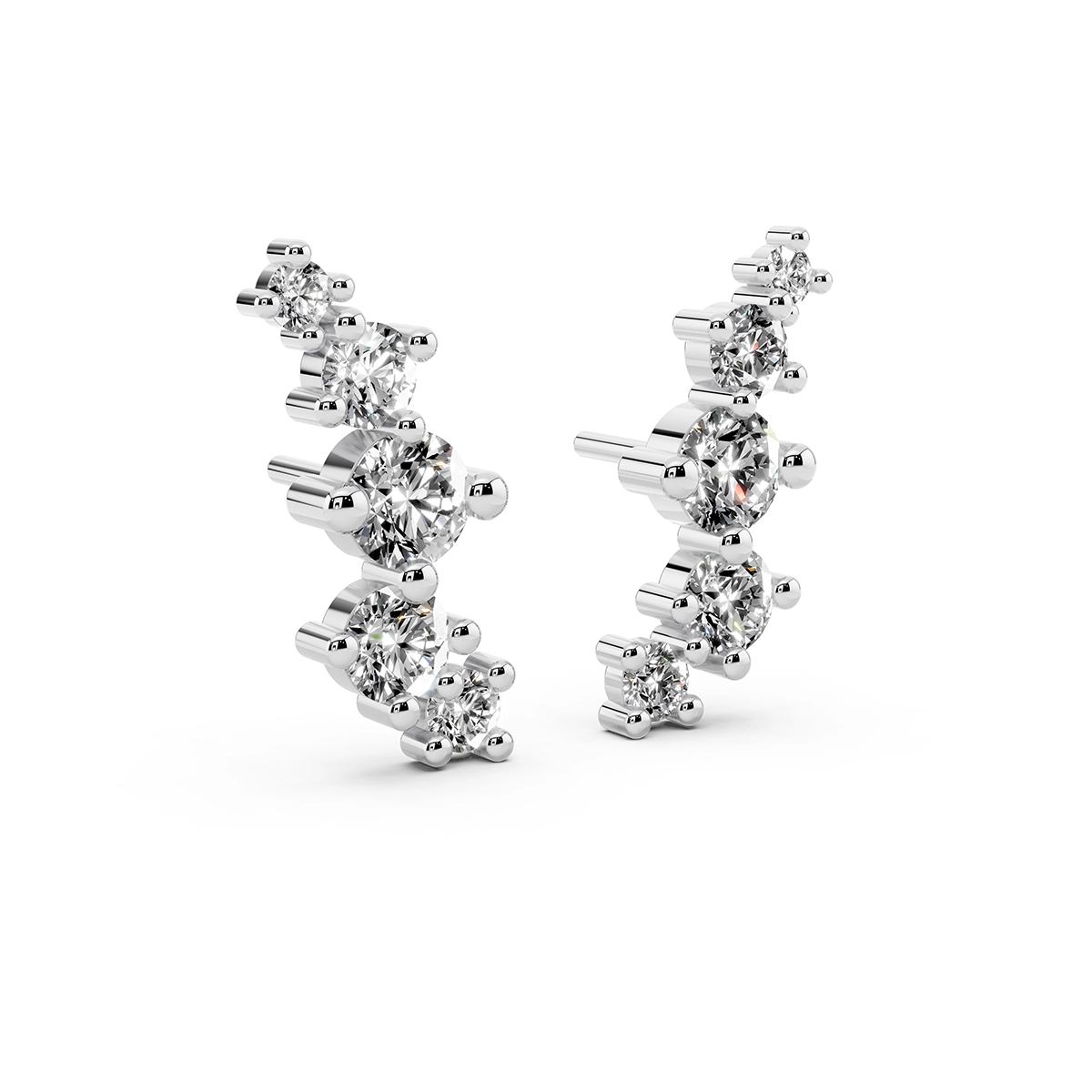 עגילי דימונד מטפסים עשויים כסף טהור 925. כל עגיל משובץ בחמישה זירקונים נוצצים בגדלים שונים, היוצרים מראה מעניין ולא שגרתי. הזירקון הגדול ממוקם במרכז העגיל, כשסביבו פזורים ארבעת הזירקונים הנוספים באופן א-סימטרי.