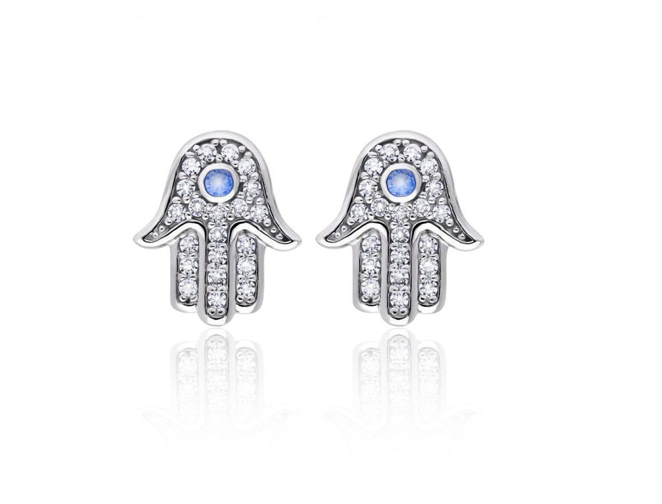 עגילי חמסה משובצת זירקון כחול משובצים זירקונים מכסף 925 טהור לאישה. חצי שנה אחריות. האתר המוביל בארץ למכירת תכשיטי כסף 925 | משלוח חינם בכל רכישה לכל הארץ !