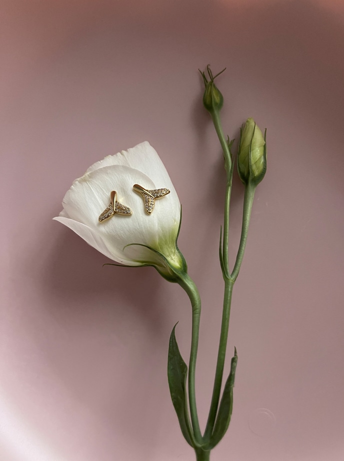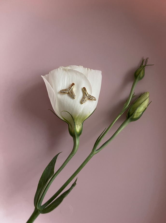 עגילי סנפיר דולפין מכסף 925 בציפוי זהב משובצים זירקונים.