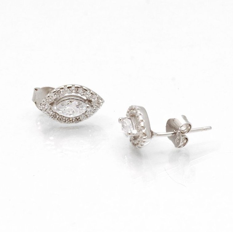 עגילי כסף קינדר עם זרקן מרכזי מסגרת משובצת