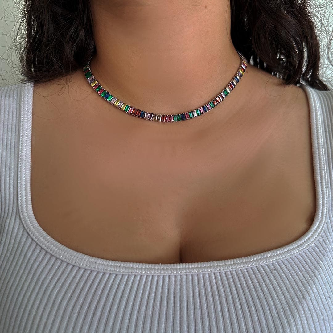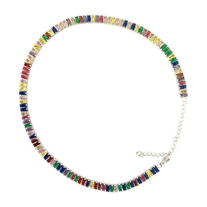 צ'וקר בגטים משובץ בבגטים צבעוניים ונוצצים.