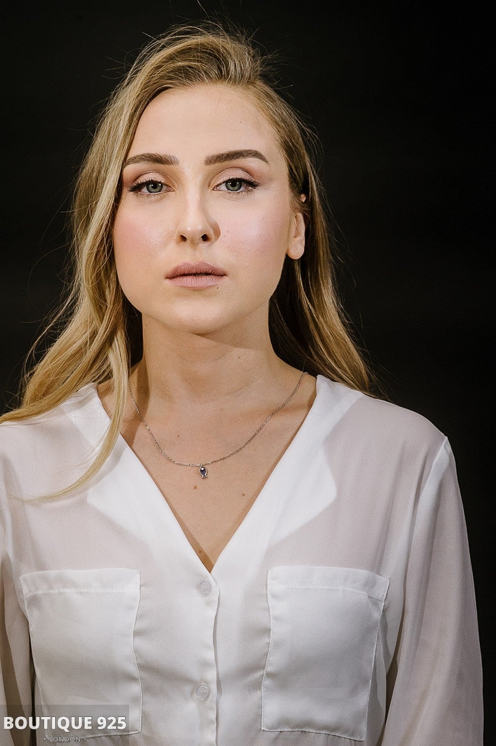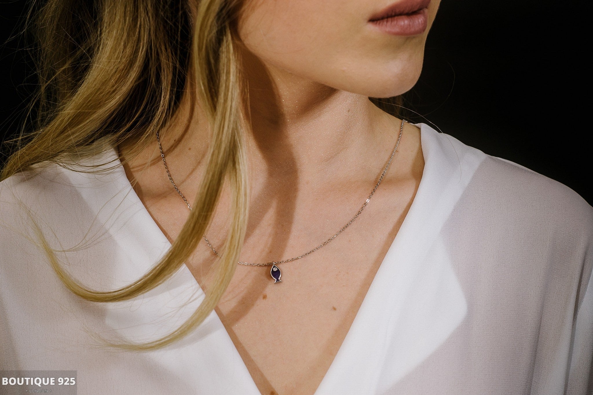 צ'וקר דג כחול משובץ זירקון מכסף 925 טהור לאישה. הצ'וקר משובץ בזירקון AAAA בחיתוך יהלום. מצופה ברודיום להגנה מפני התחמצנות ושריטות. המוצר מגיע באריזת מתנה מהודרת וממותגת! חצי שנה אחריות.