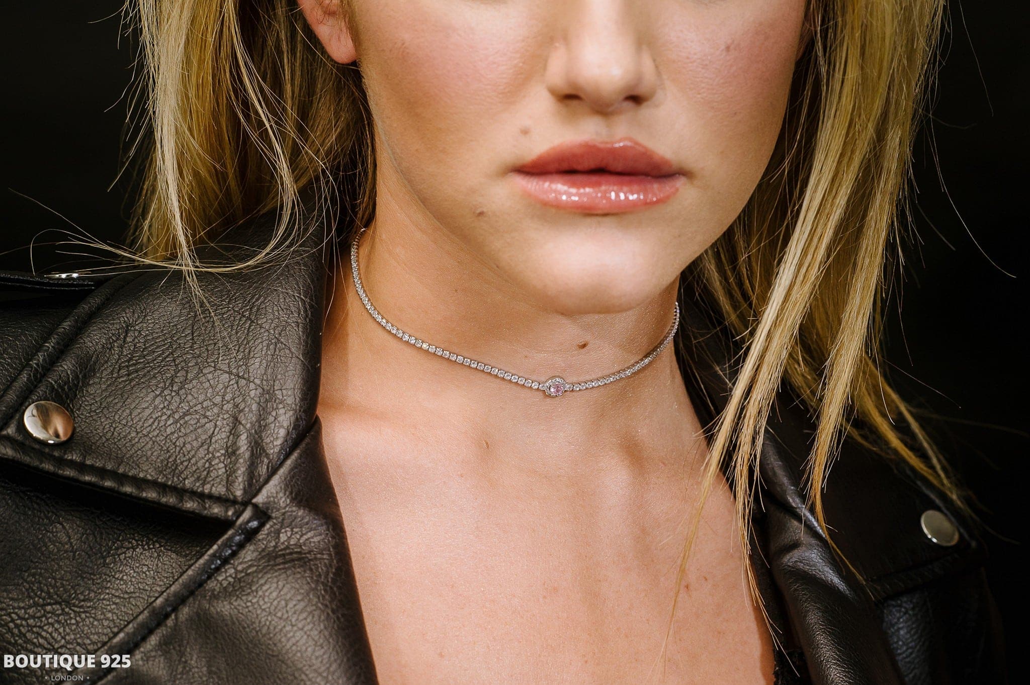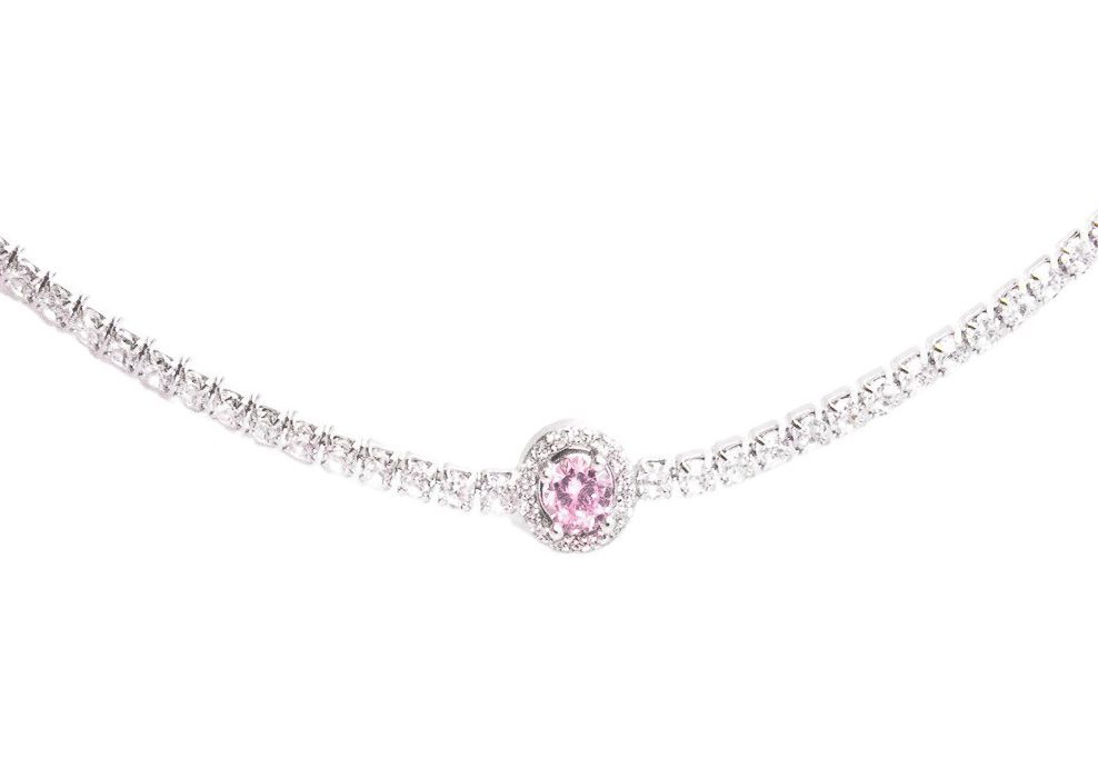 צ'וקר טניס מכסף עם זרקן ורוד עגול משובץ זירקונים