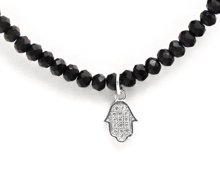 צ'וקר שחור מאבנים אמיתיות עם אלמנט חמסה מכסף 925 טהור