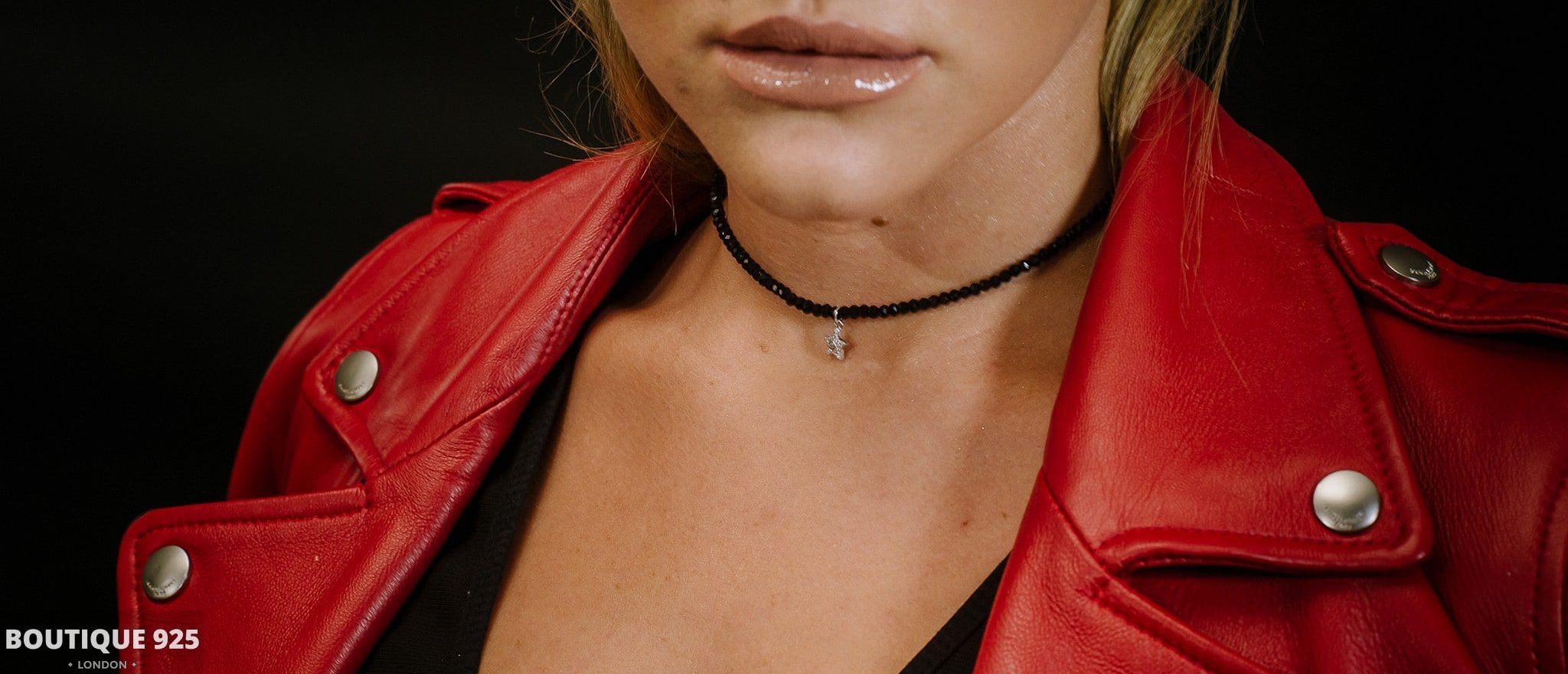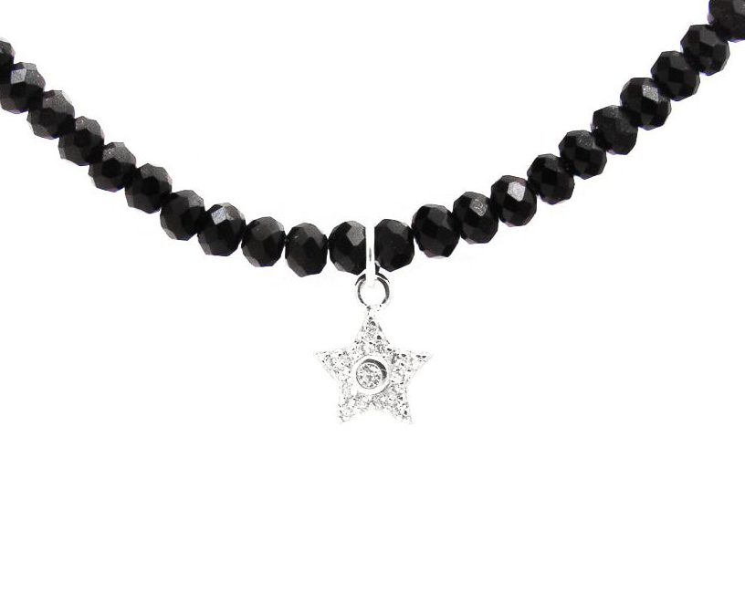 צ'וקר שחור מאבנים אמיתיות עם אלמנט כוכב משובץ עם זרקן מכסף 925 טהור