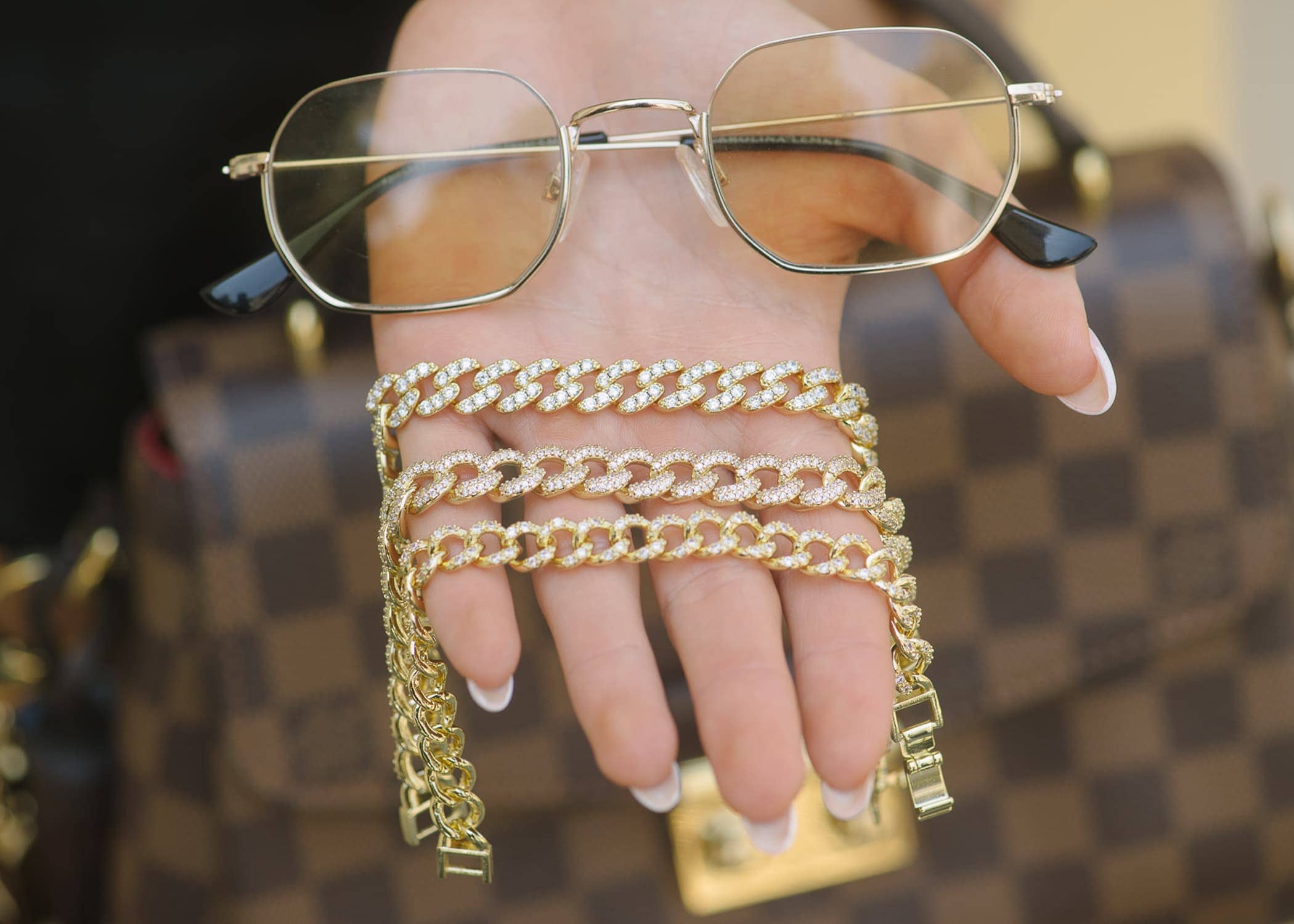 צמיד גורמט שזור בזירקונים וסוגר מהודר בצבע זהב