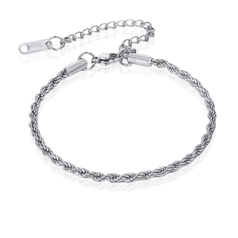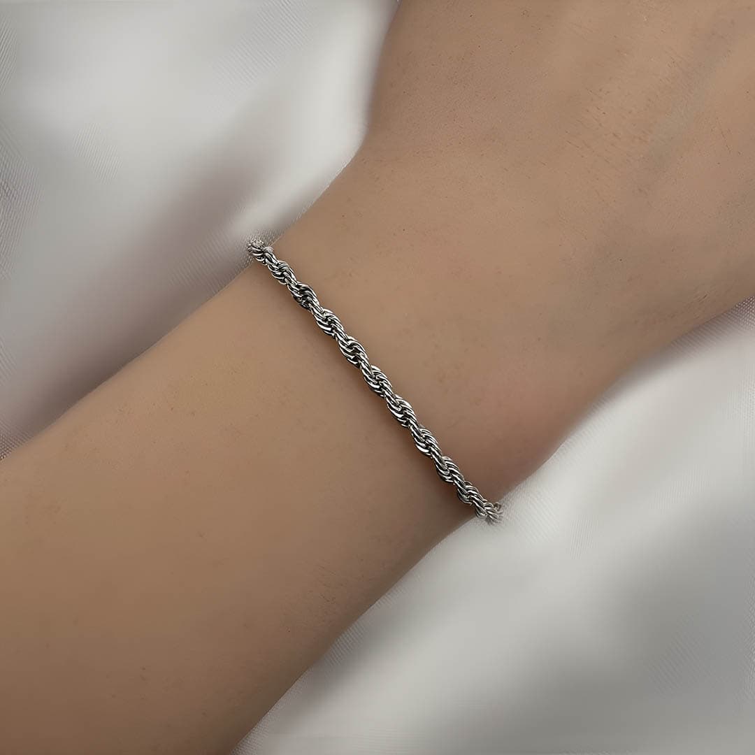 צמיד חבל בצבע כסף עשוי סטיינל סטיל פלדת אל חלד בלתי משחירה/מחלידה. התכשיט מגיע באריזת מתנה ממותגת ומהודרת! חצי שנה אחריות.