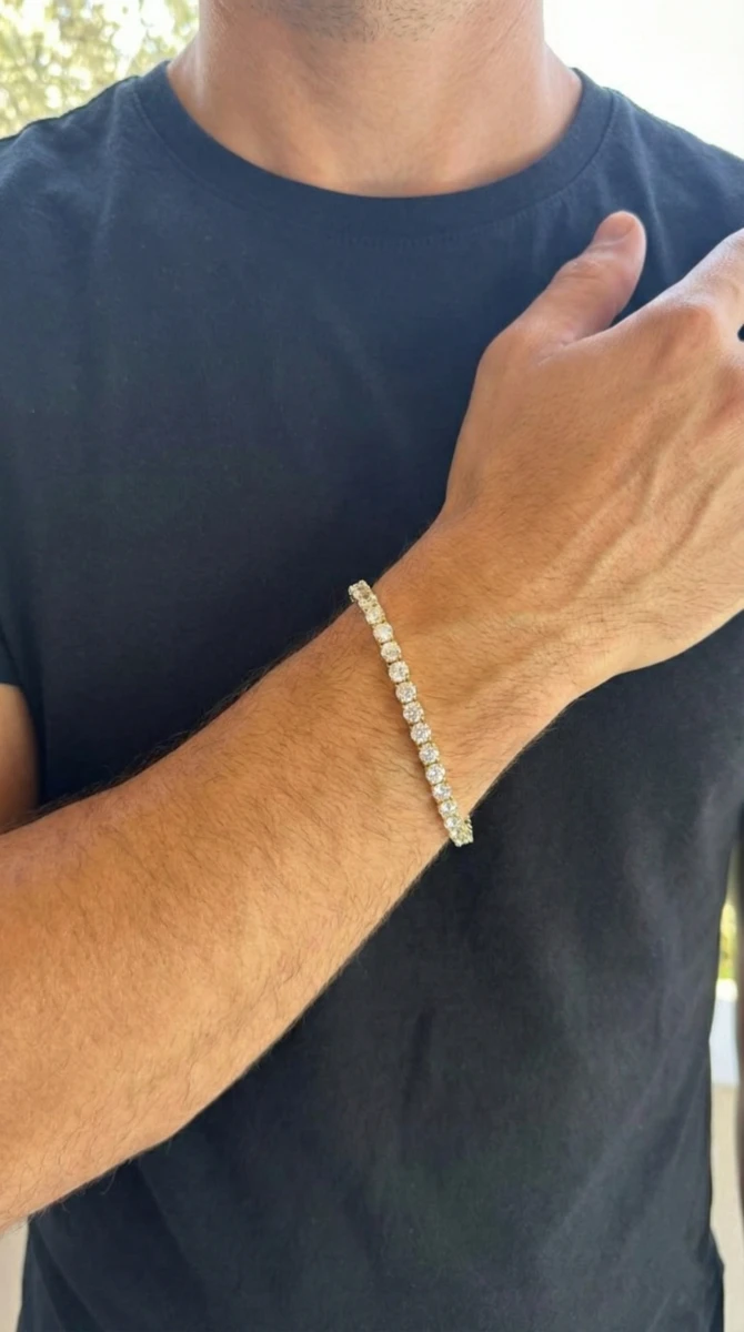 צמיד טניס אייס זהב לגבר משובץ זירקונים עגולים מכסף 925 שמצופה בזהב 14K.