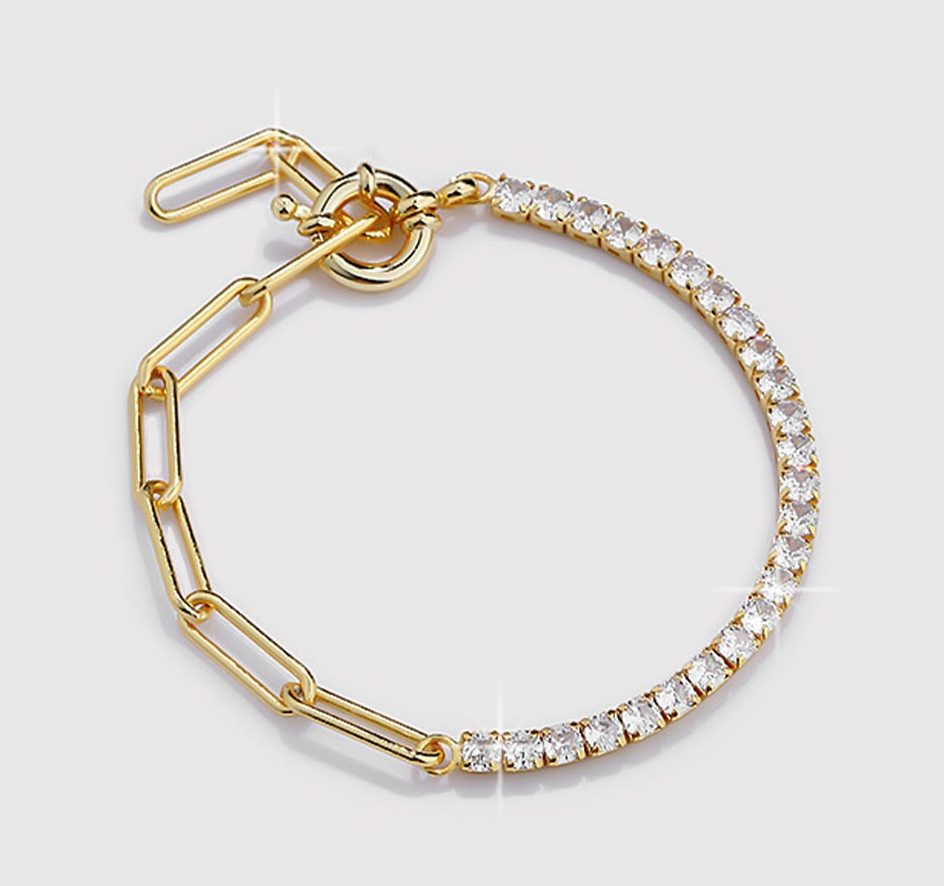 צמיד טניס בייסיק שיבוץ דק מציפוי זהב וכסף 925