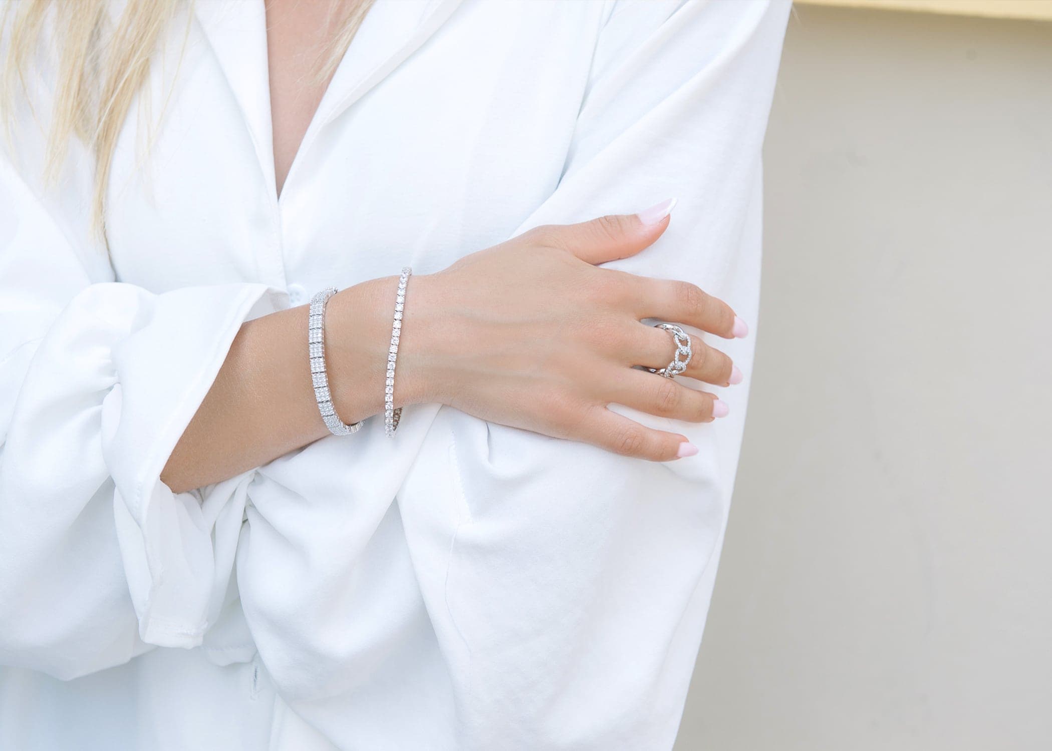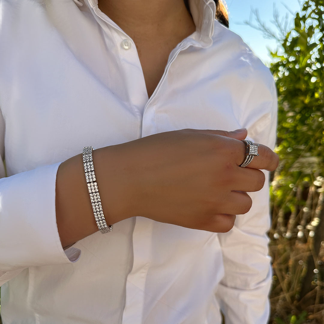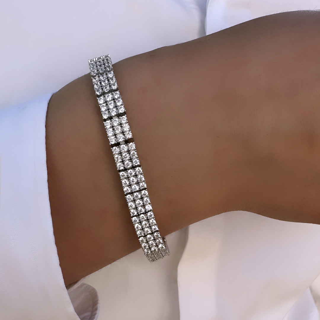 צמיד טניס כסף עם שלוש שורות זירקונים לאישה