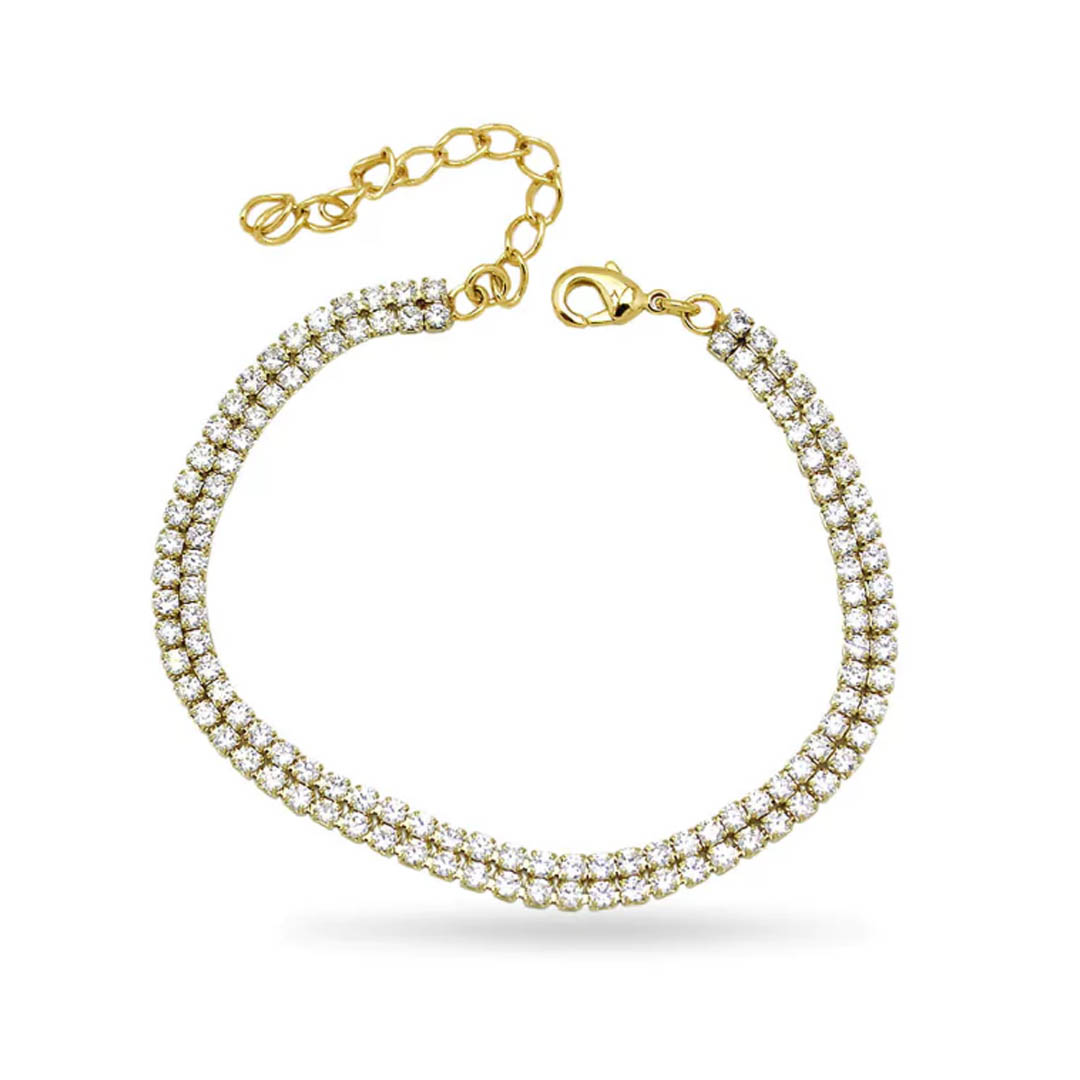 צמיד טניס כפול בצבע זהב משובץ בזירקונים בעובי 2 מ"מ