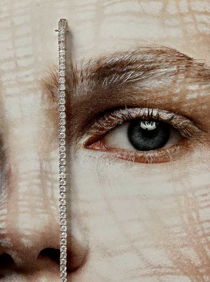 הצמיד משובץ בזירקוני AAAA בחיתוך יהלום. מצופה ברודיום להגנה מפני התחמצנות ושריטות.