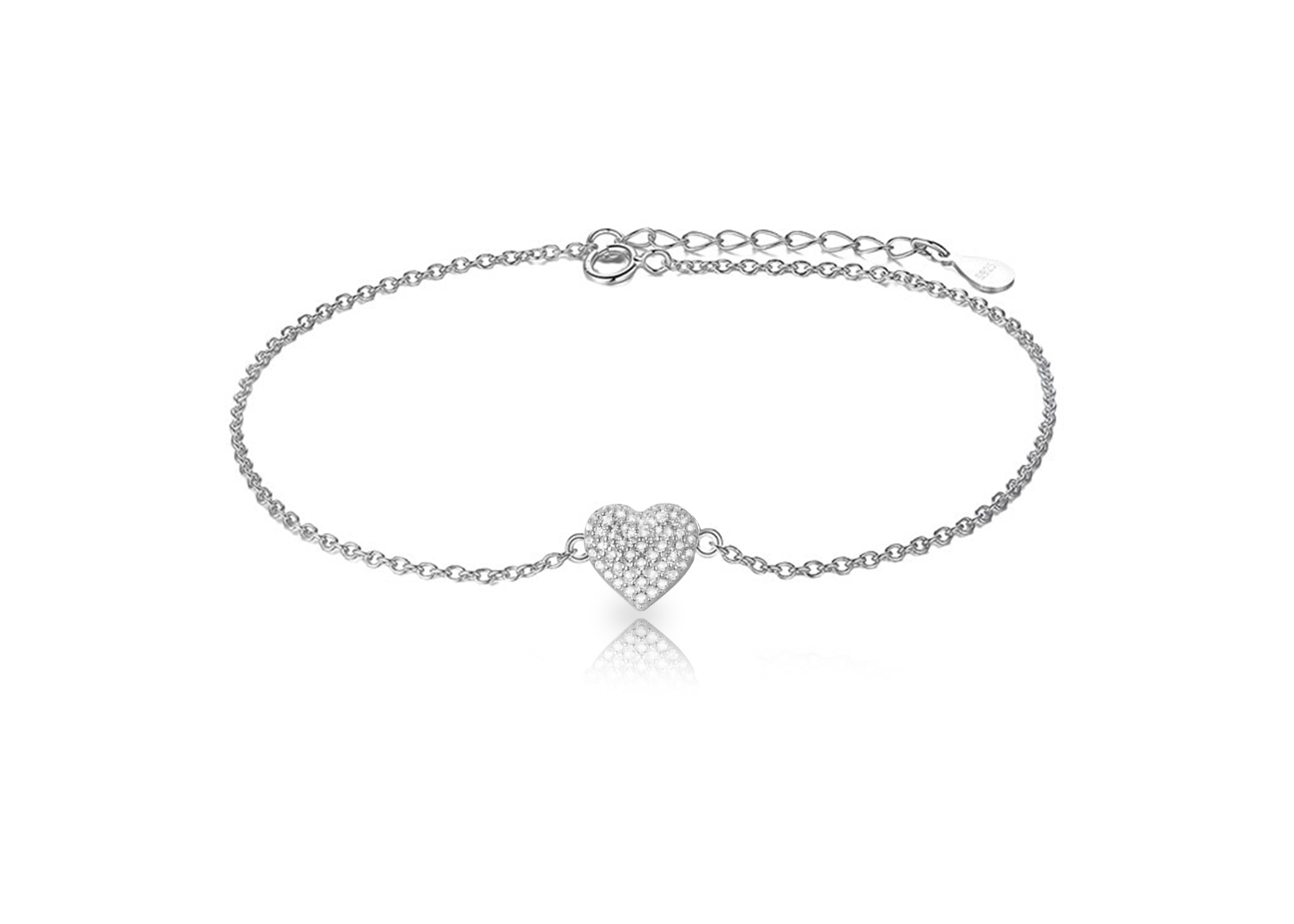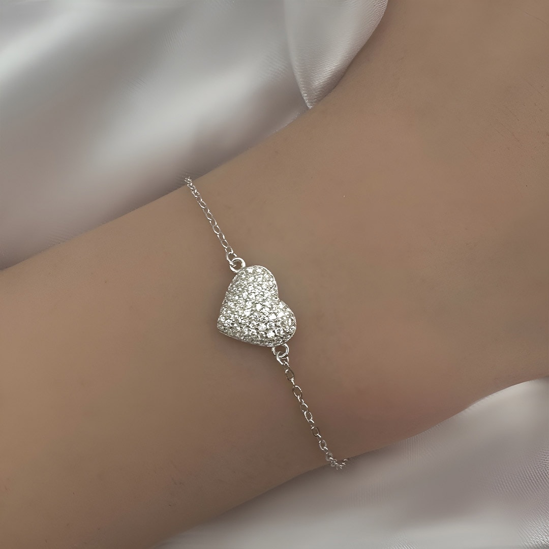 צמיד כסף לב משובץ זירקונים מכסף 925 טהור לאישה. הצמיד משובץ בזירקוני AAAA בחיתוך יהלום. מצופה ברודיום להגנה מפני התחמצנות ושריטות. המוצר מגיע באריזת מתנה ממותגת ומהודרת! חצי שנה אחריות.