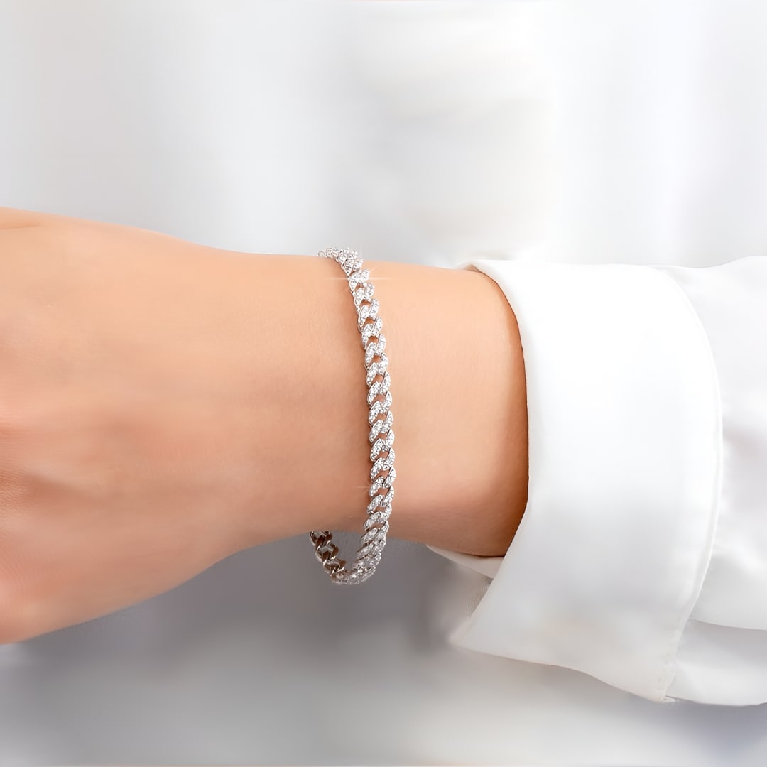 צמיד גורמט קובני משובץ מכסף 925 טהור