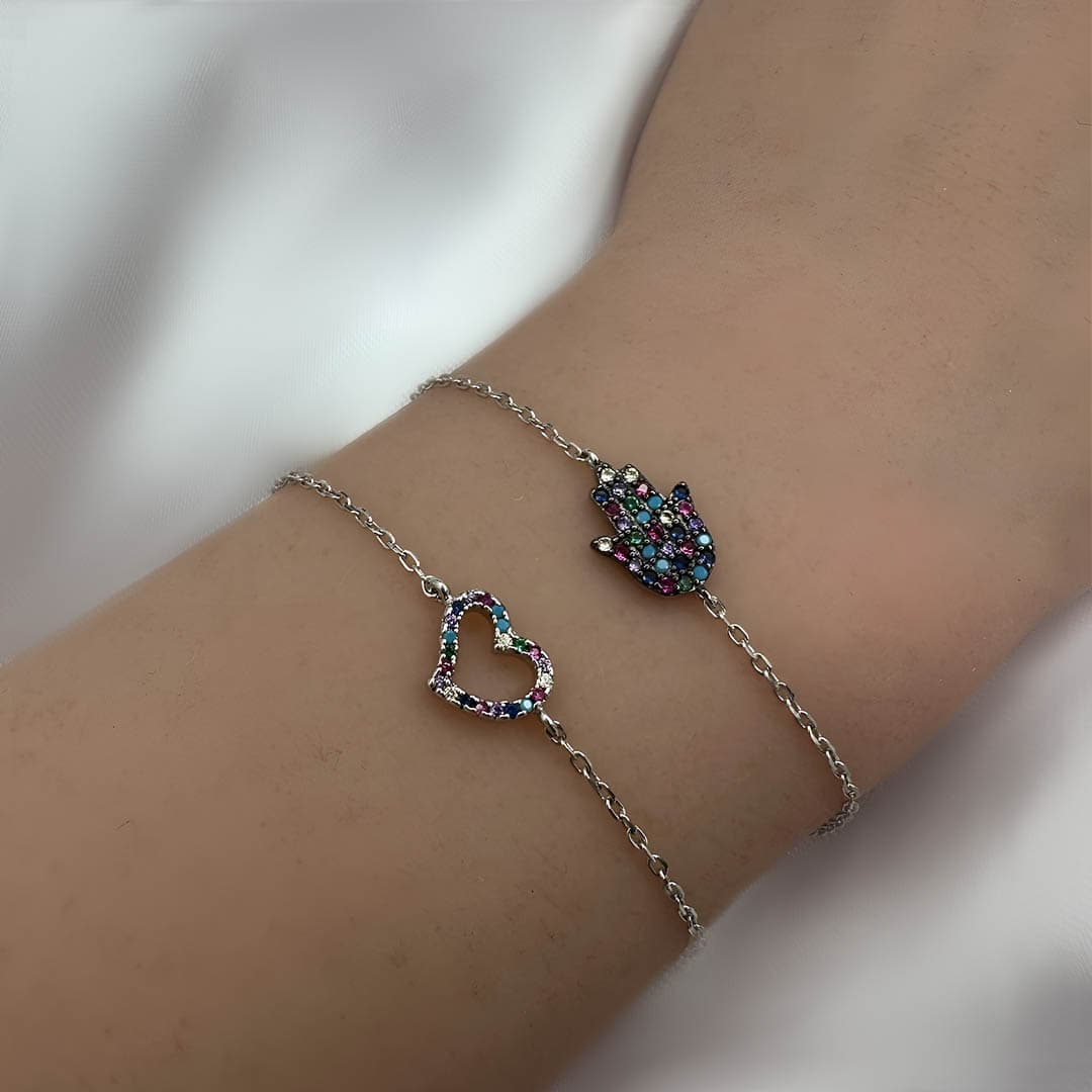 צמיד לב קולקציית ריינבו משובץ זירקונים צבעוניים